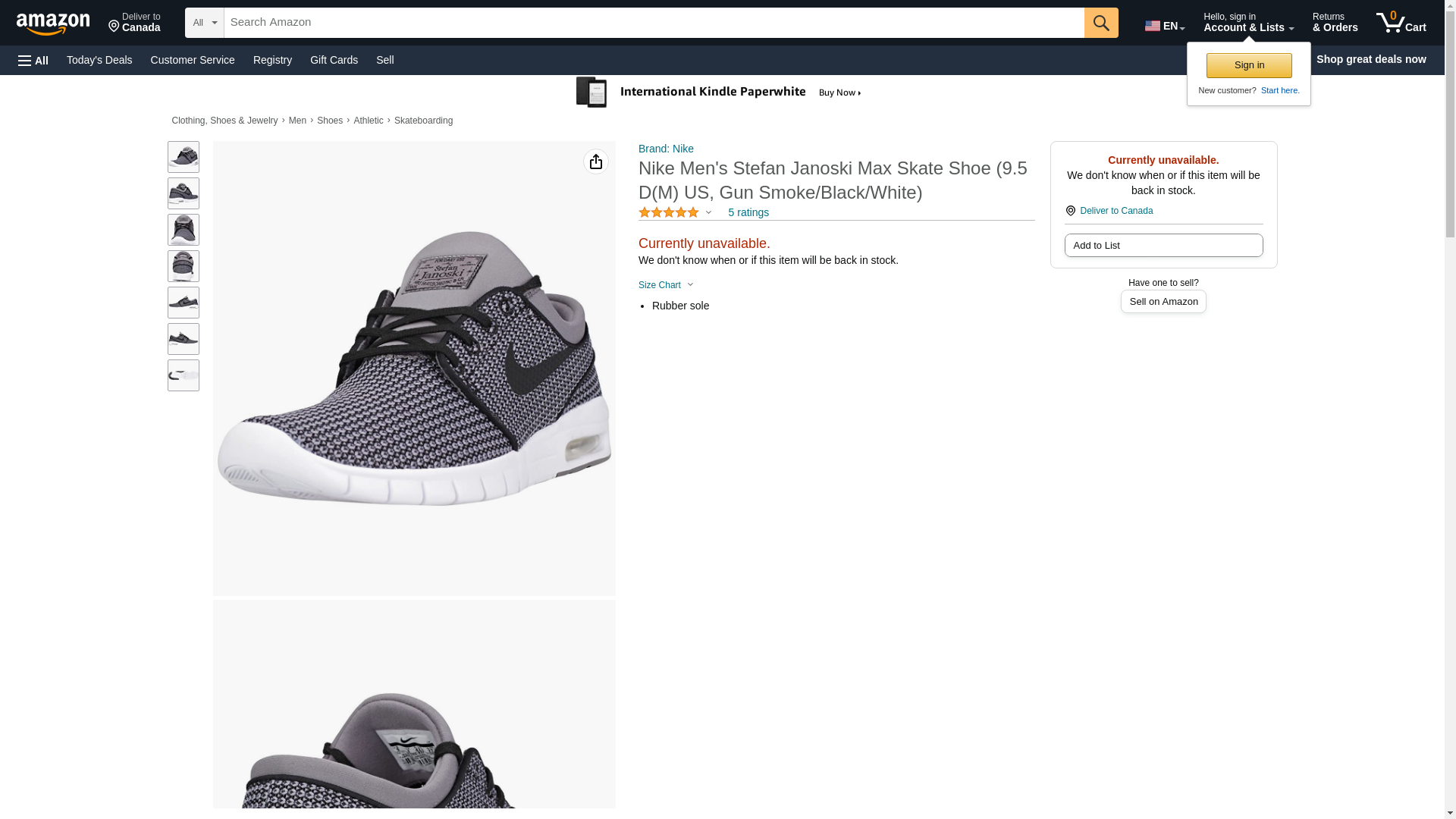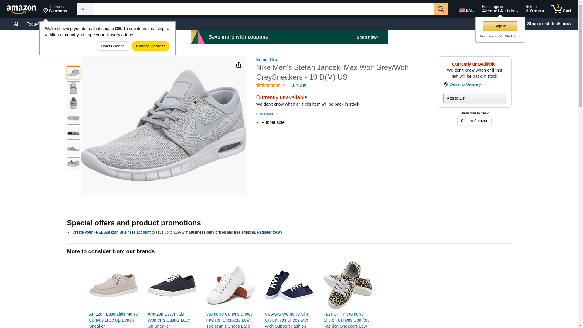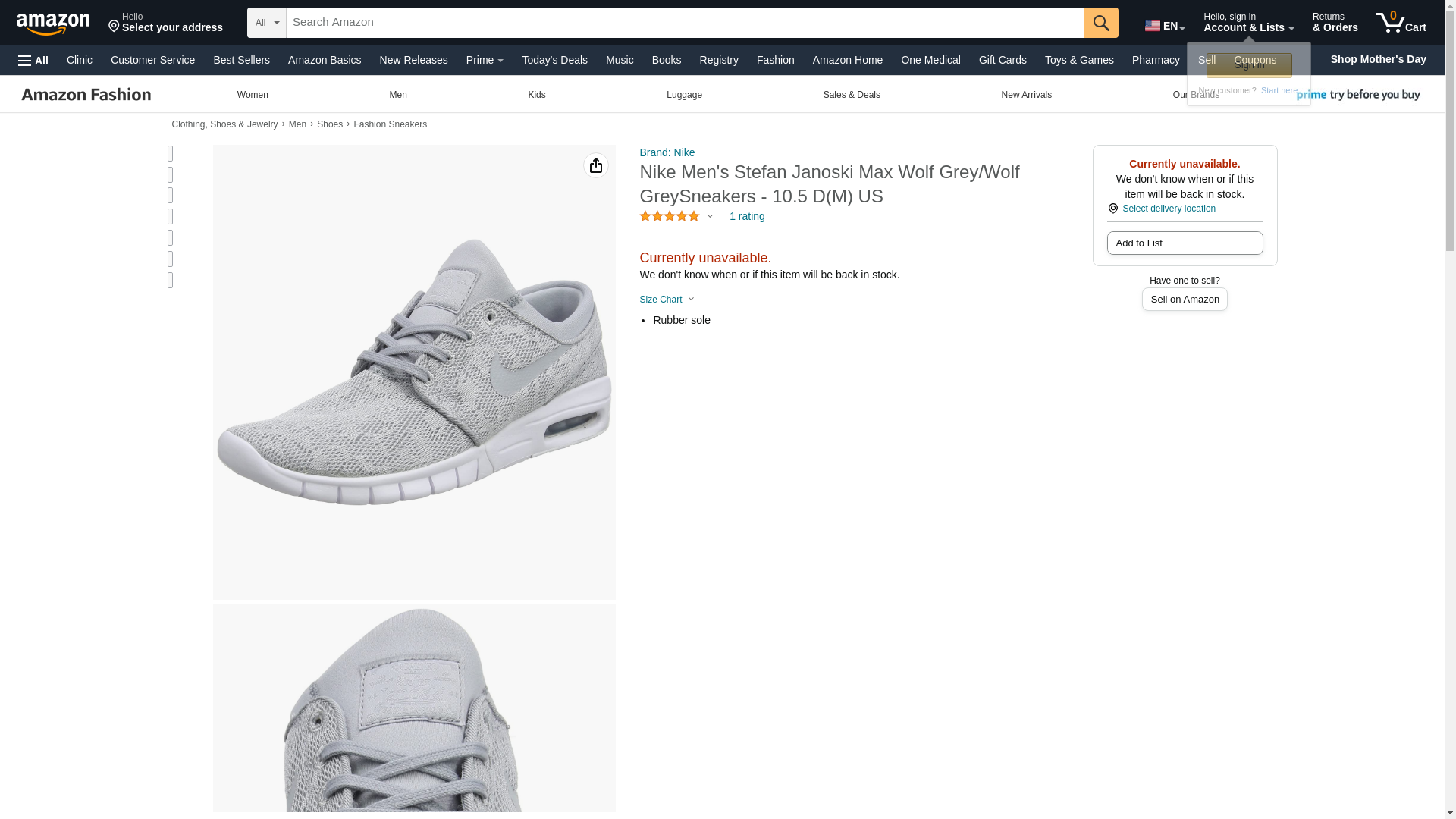 Nike Men's Stefan Janoski Max Wolf Grey/Wolf GreySneakers - 7.5 D(M) US