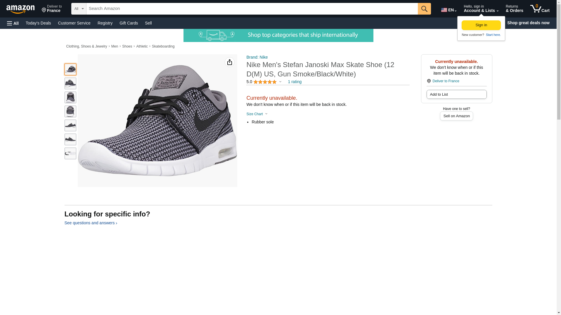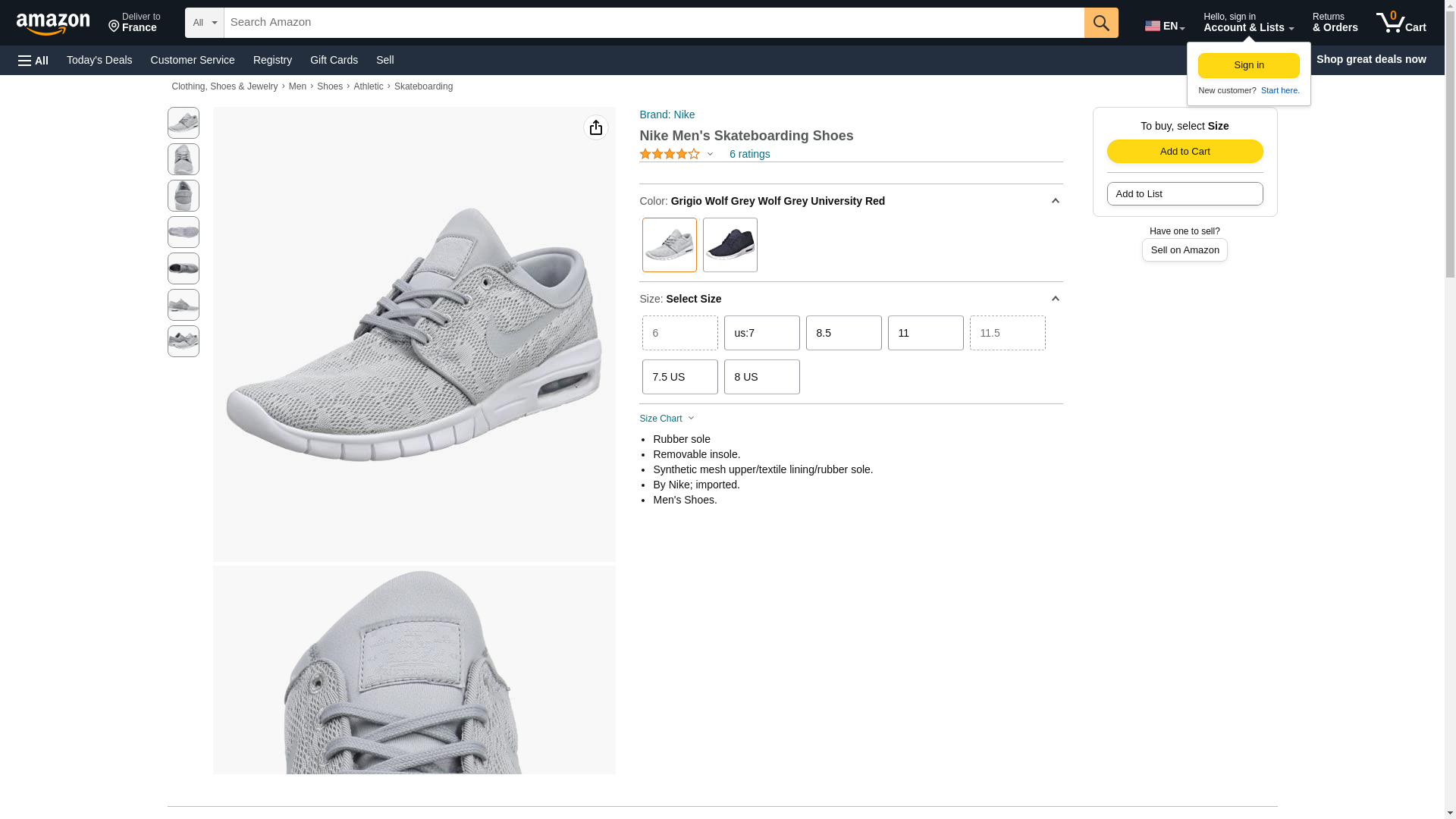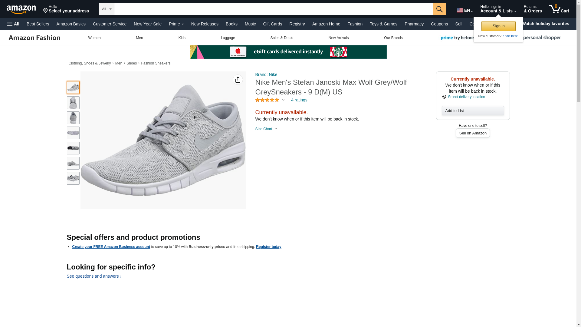 Nike Men's Stefan Janoski Max Wolf Grey/Wolf GreySneakers - 7.5 D(M) US