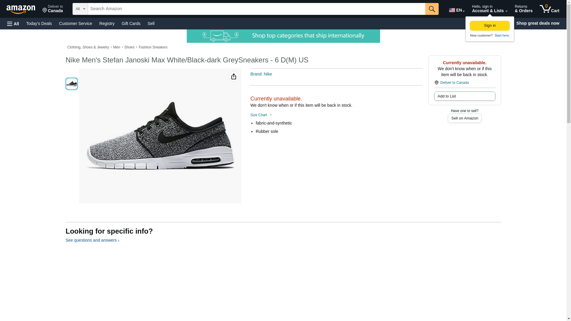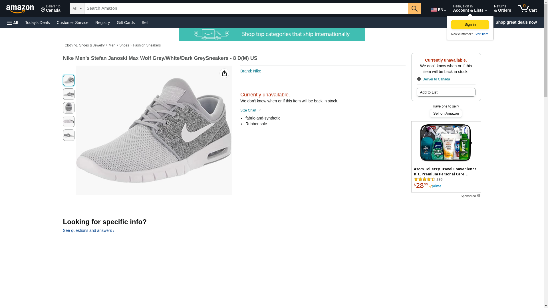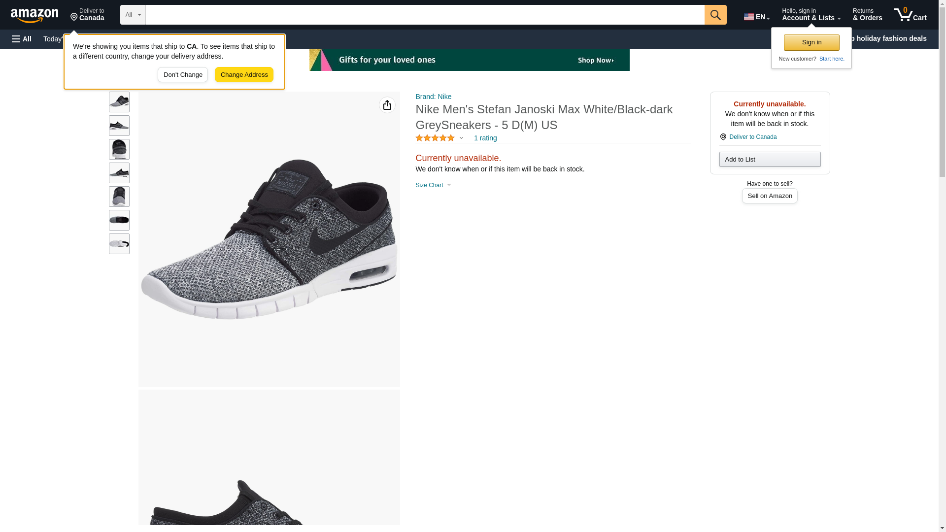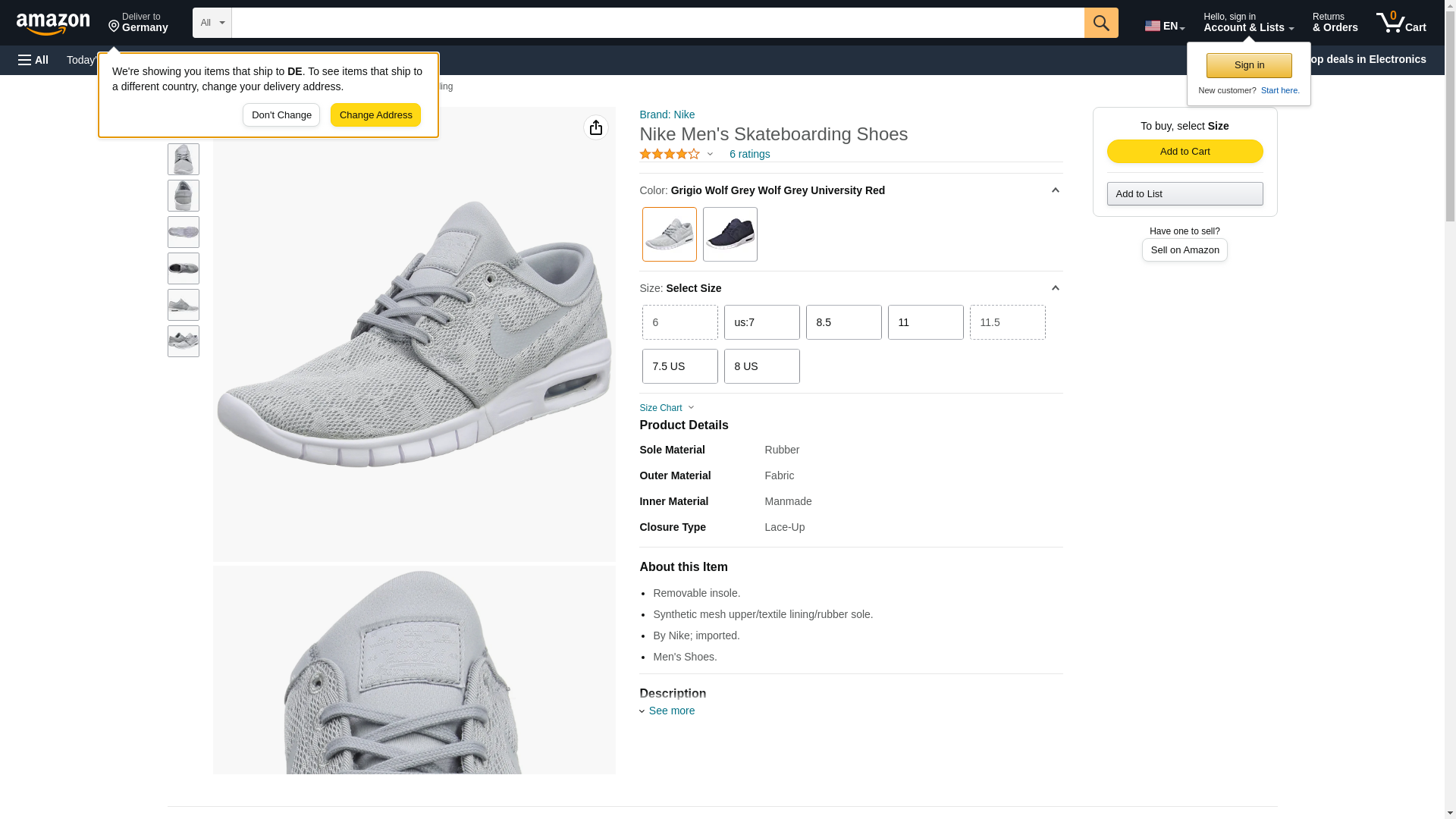 Nike Men's Stefan Janoski Max Wolf Grey/Wolf GreySneakers - 6.5 D(M) US