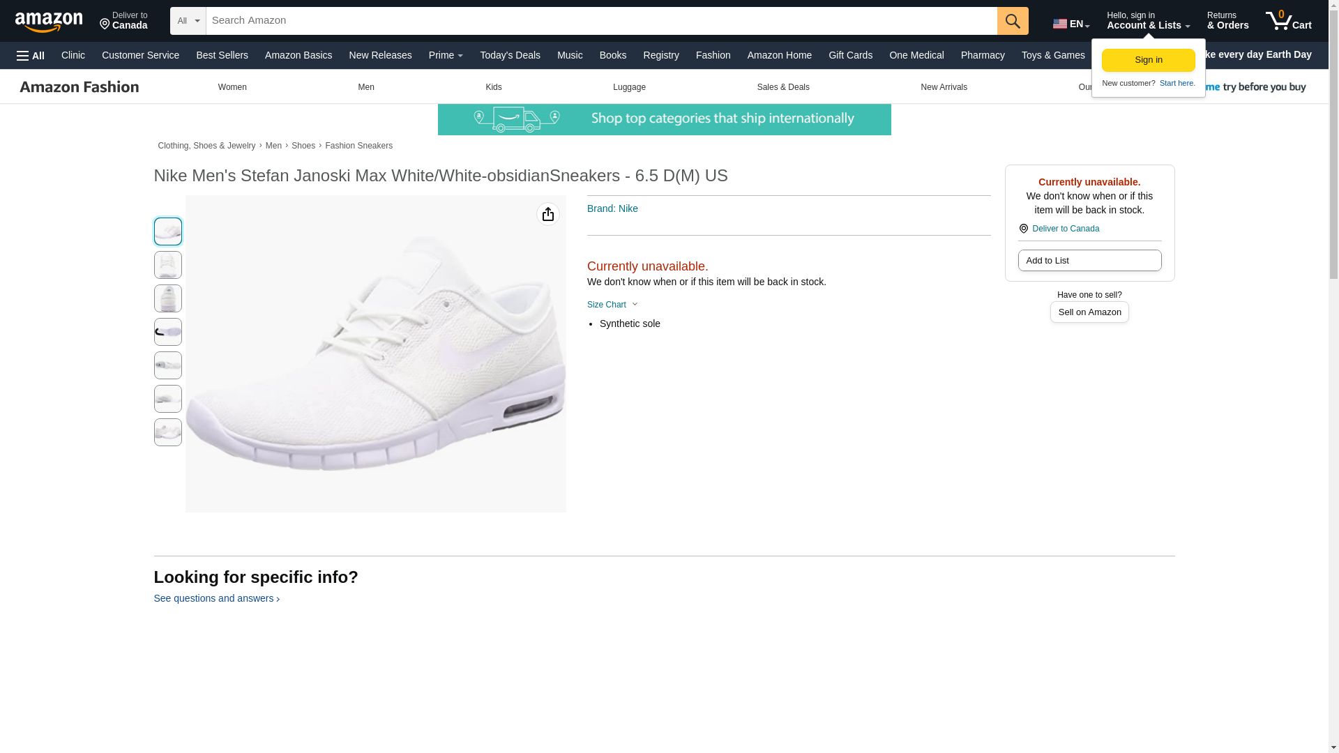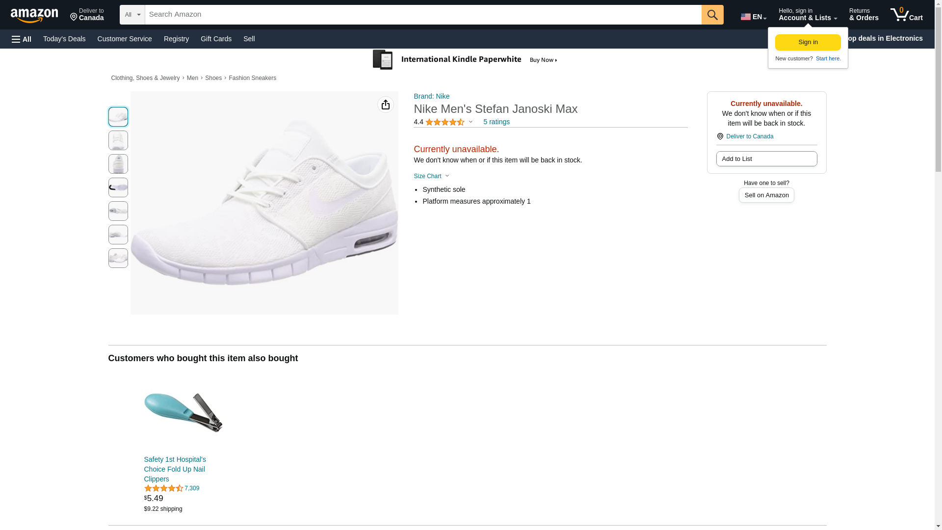 Nike Men's Stefan Janoski Max White/White-obsidianSneakers - 6.5 D(M) US