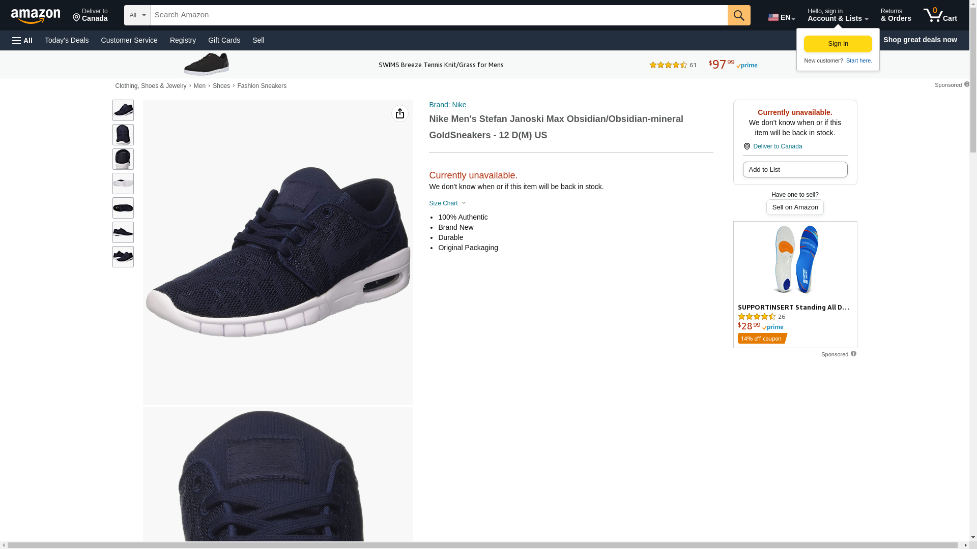 Nike Men's Stefan Janoski Max Obsidian/Obsidian-mineral Gold Sneakers - 7.5 D(M) US