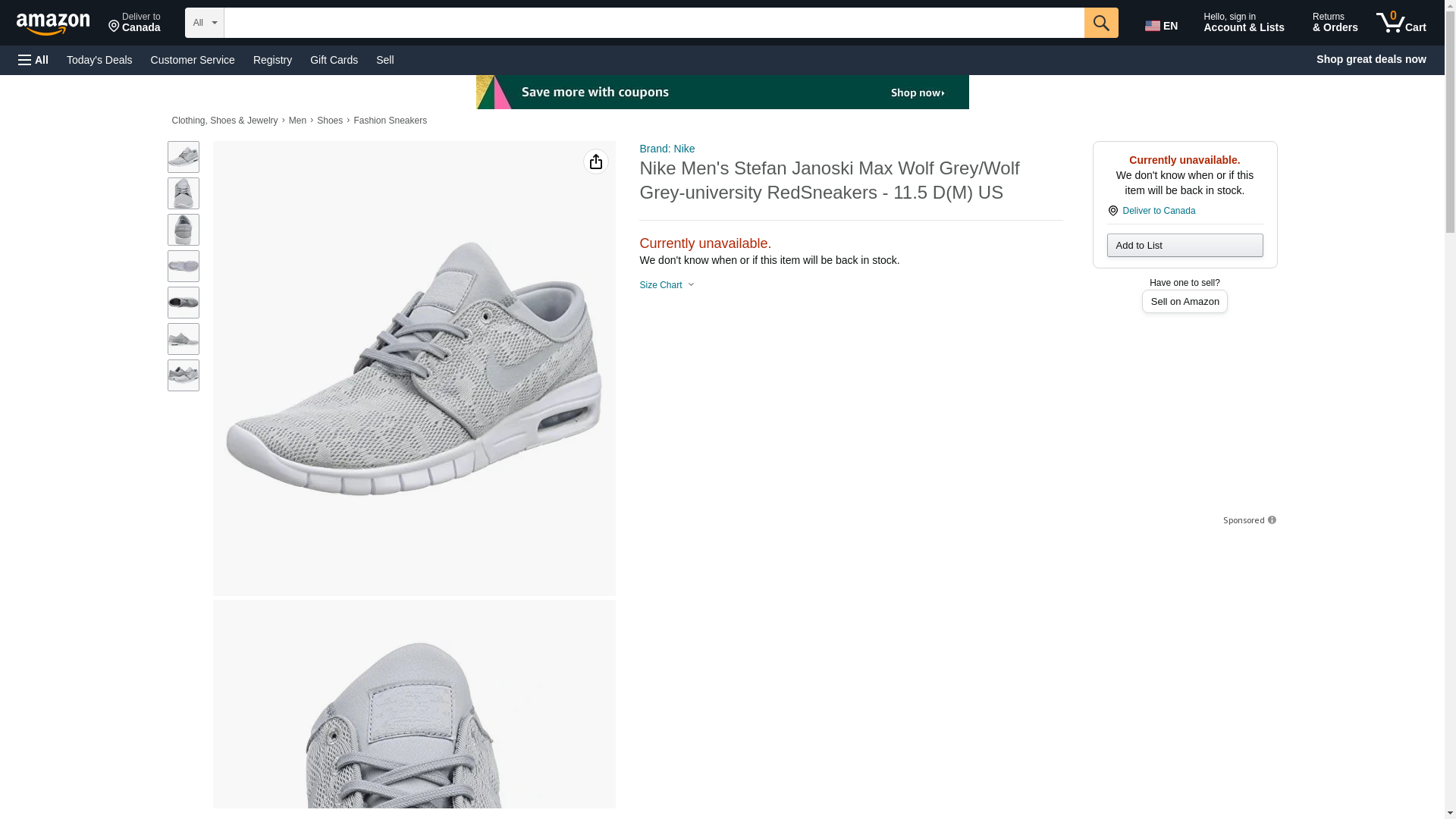 Nike Men's Stefan Janoski Max Wolf Grey/Wolf Grey-university RedSneakers - 11.5 D(M) US