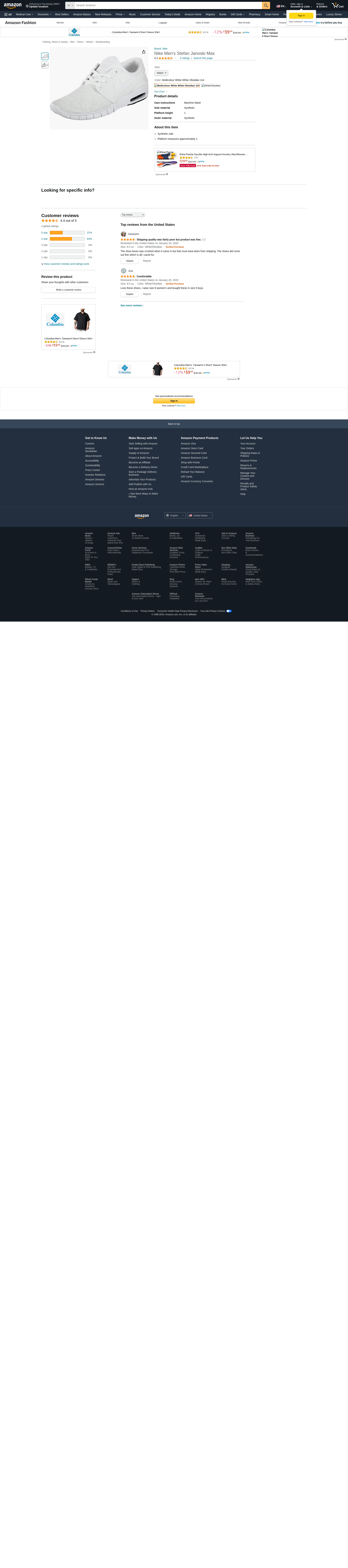 Nike Men's Stefan Janoski Max white clearwater anthracite black 140Sneakers - 10 D(M) US