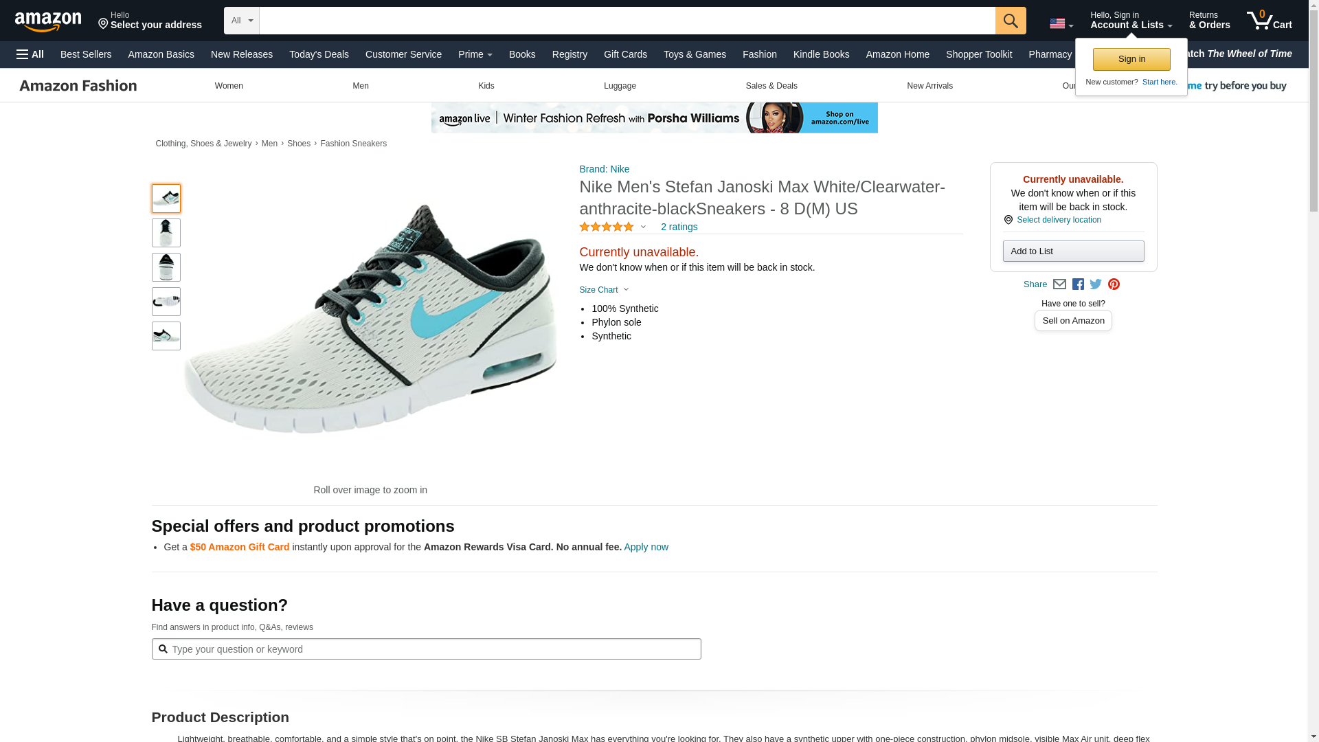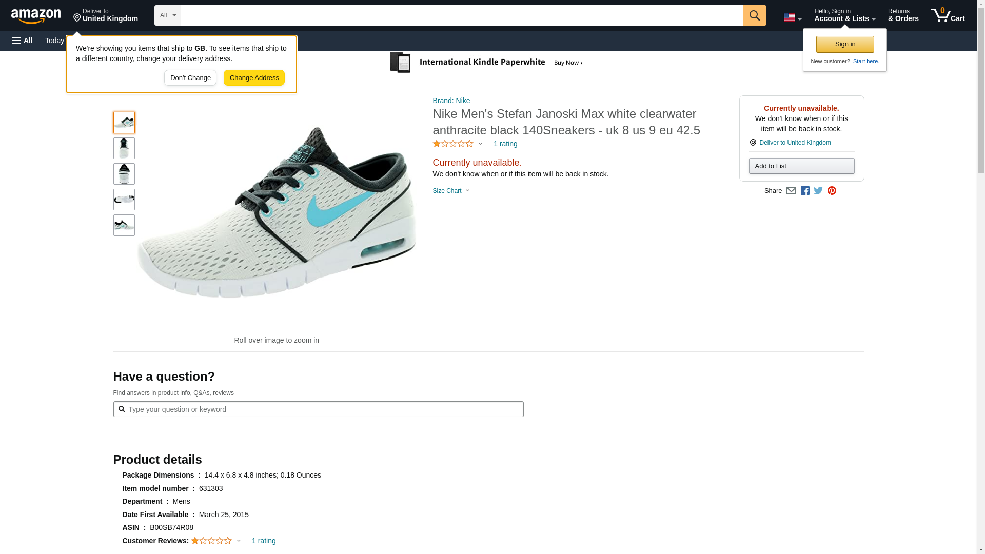 Nike Men's Stefan Janoski Max white clearwater anthracite black 140Sneakers - uk 8 us 9 eu 42.5