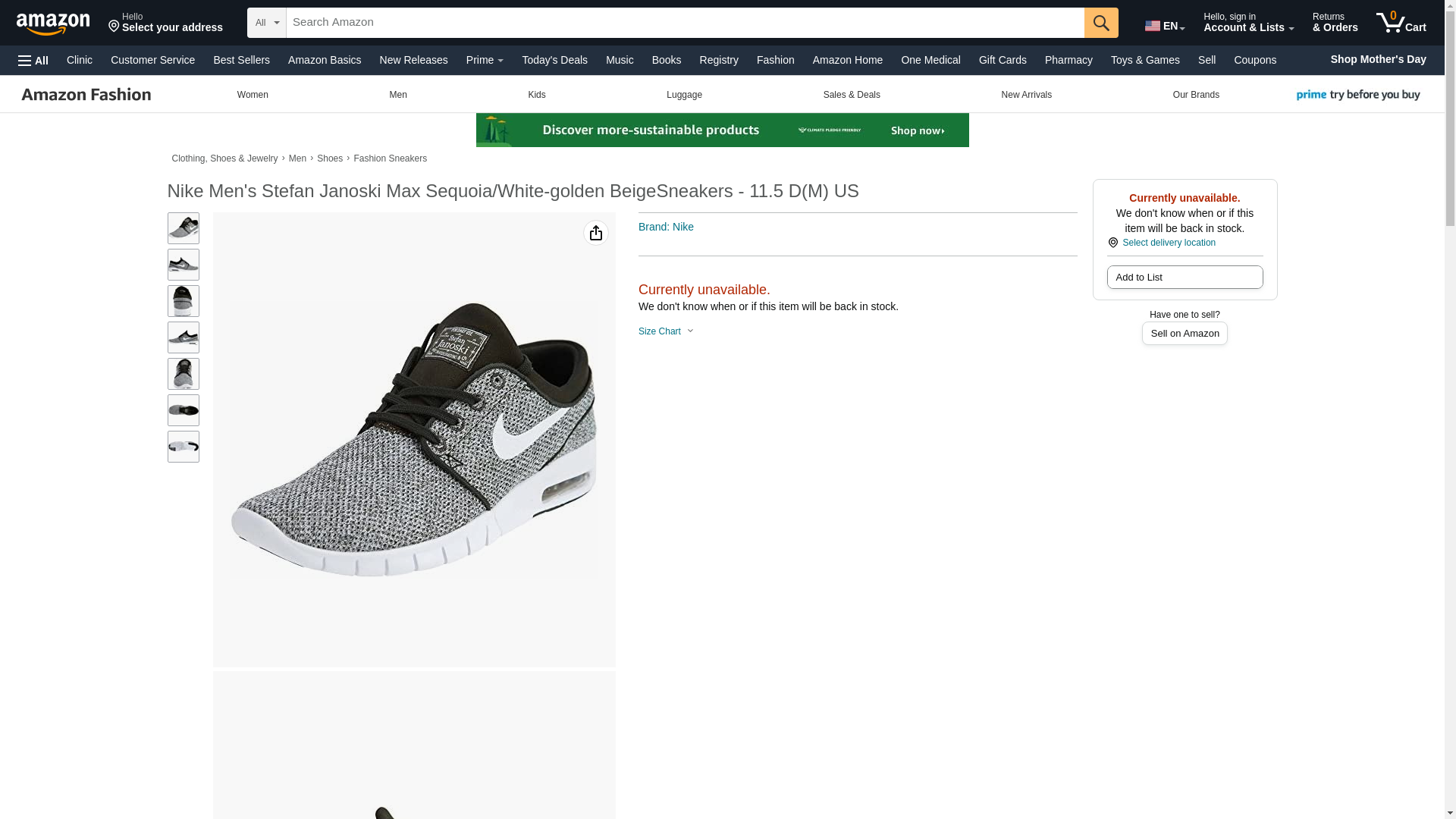 Nike Men's Stefan Janoski Max Sequoia/White-golden BeigeSneakers - 11.5 D(M) US