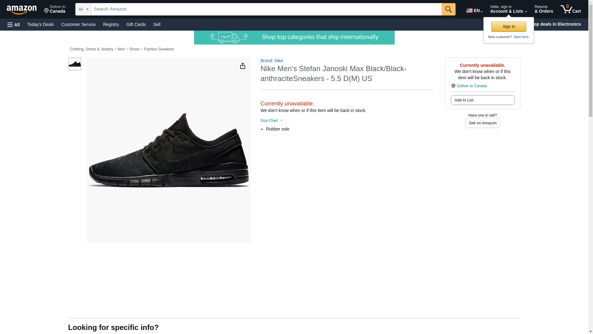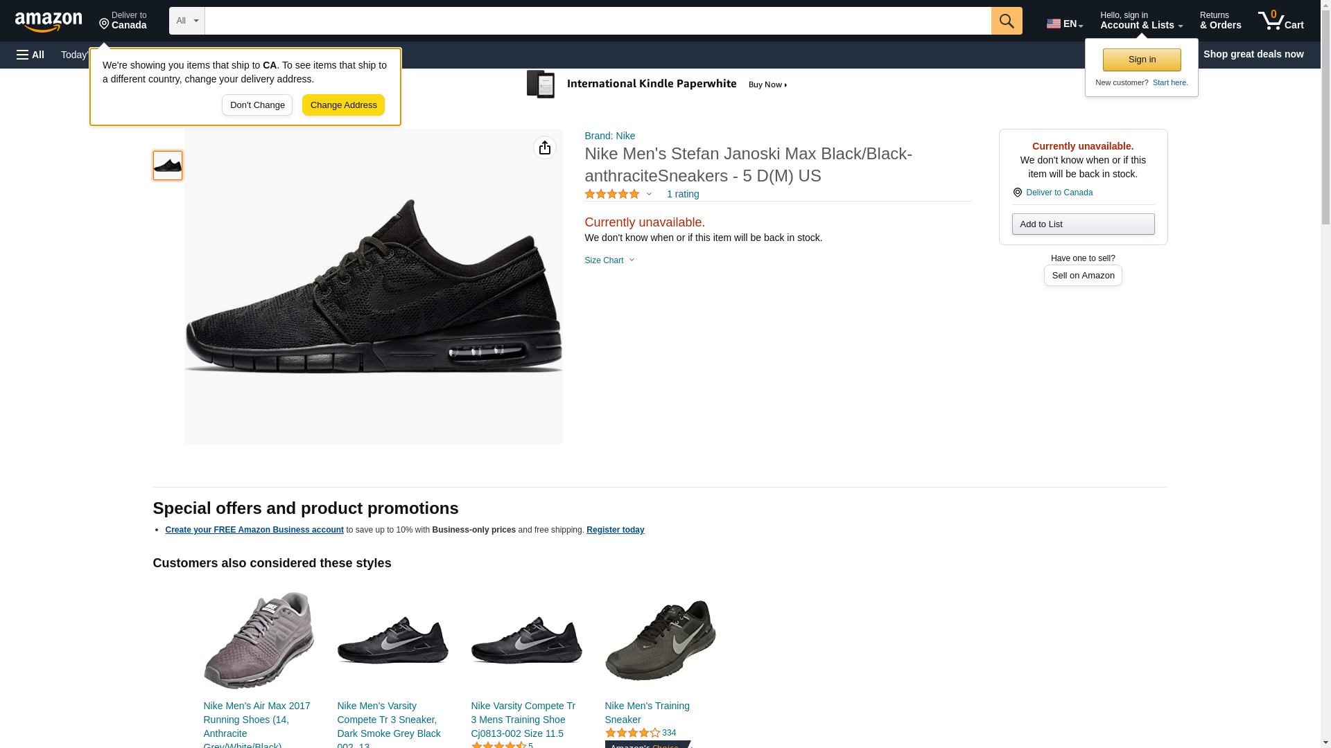 Nike Men's Stefan Janoski Max Black/Black-anthraciteSneakers - 5.5 D(M) US