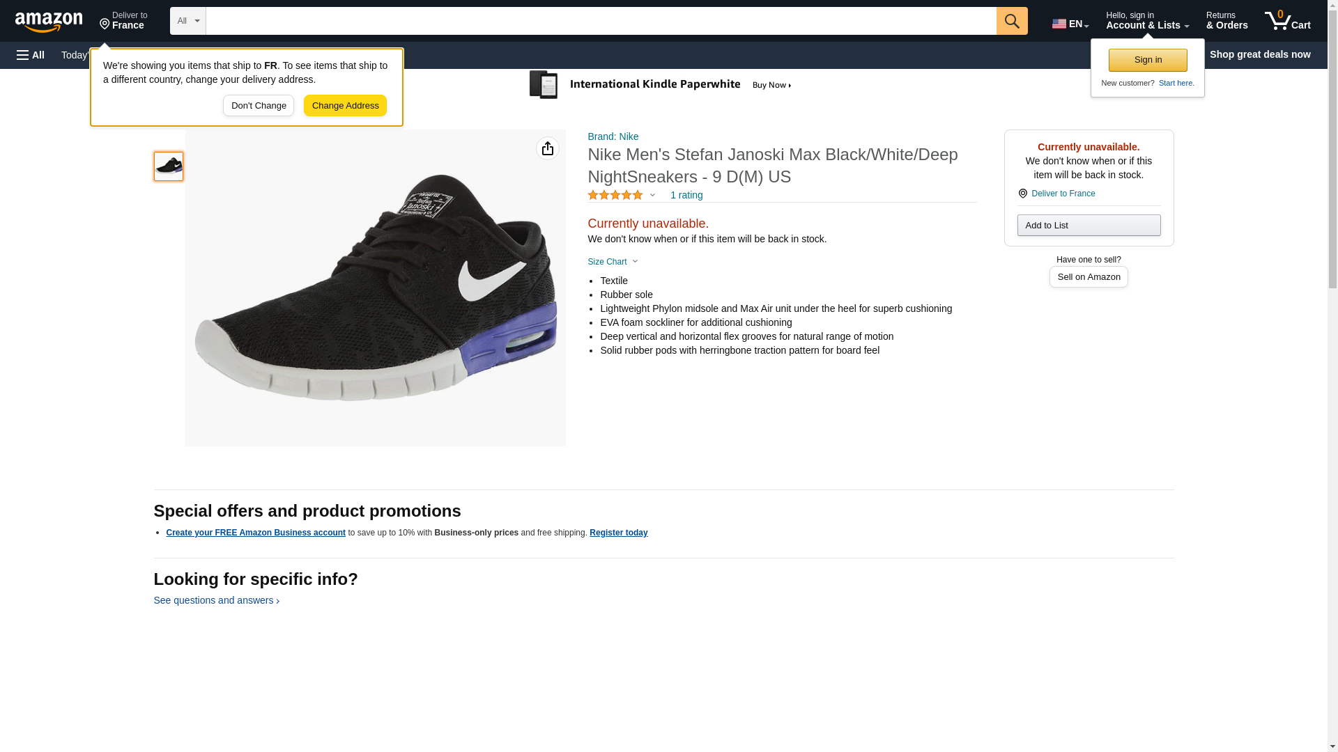 Nike Men's Stefan Janoski Max Black / WhiteSneakers - 9 D(M) US