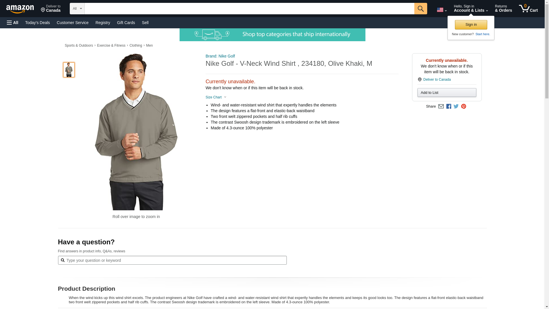Nike Golf - V-Neck Wind Shirt , 234180, Olive Khaki, M