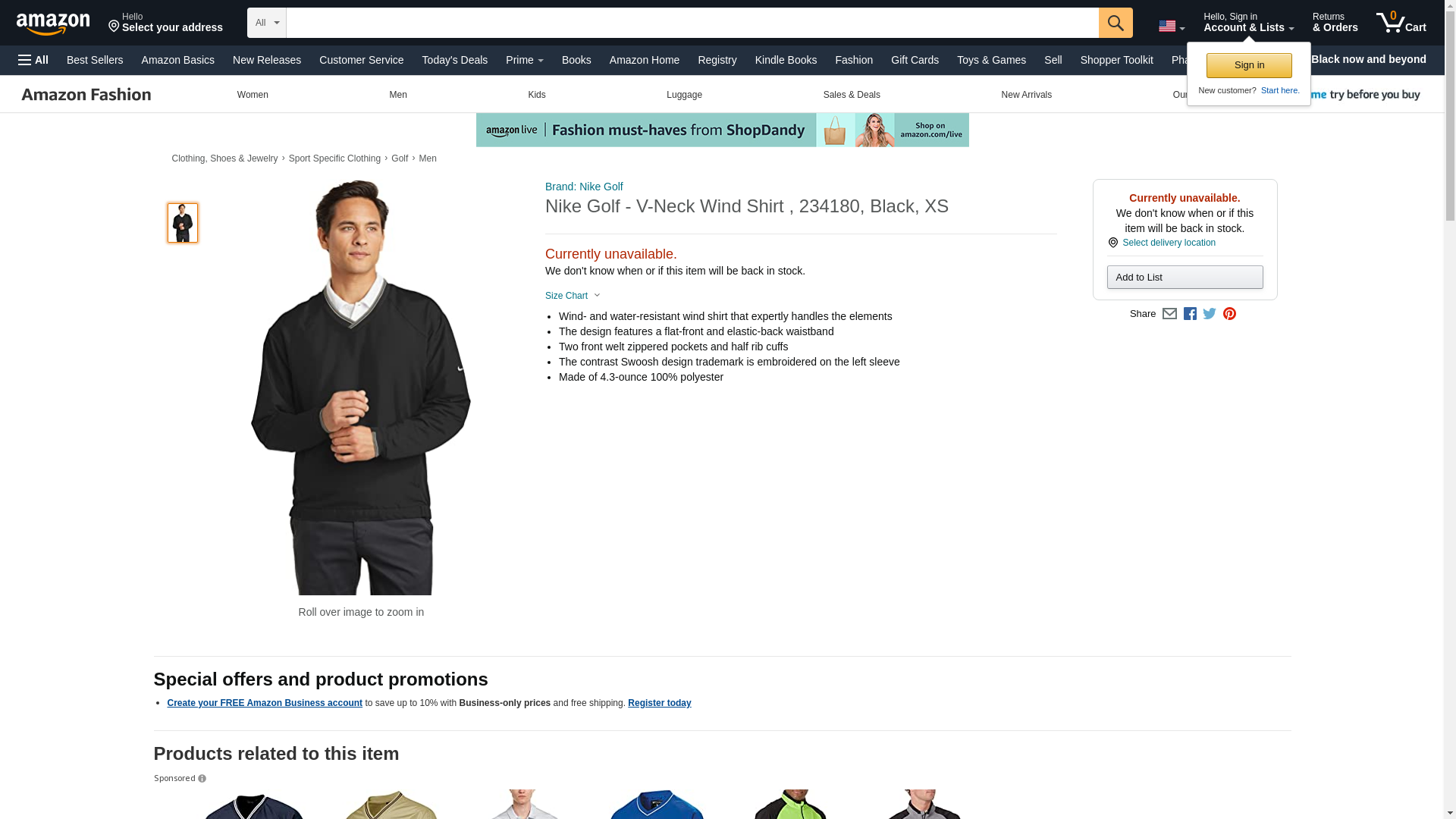 Nike Golf - V-Neck Wind Shirt , 234180, Black, XS