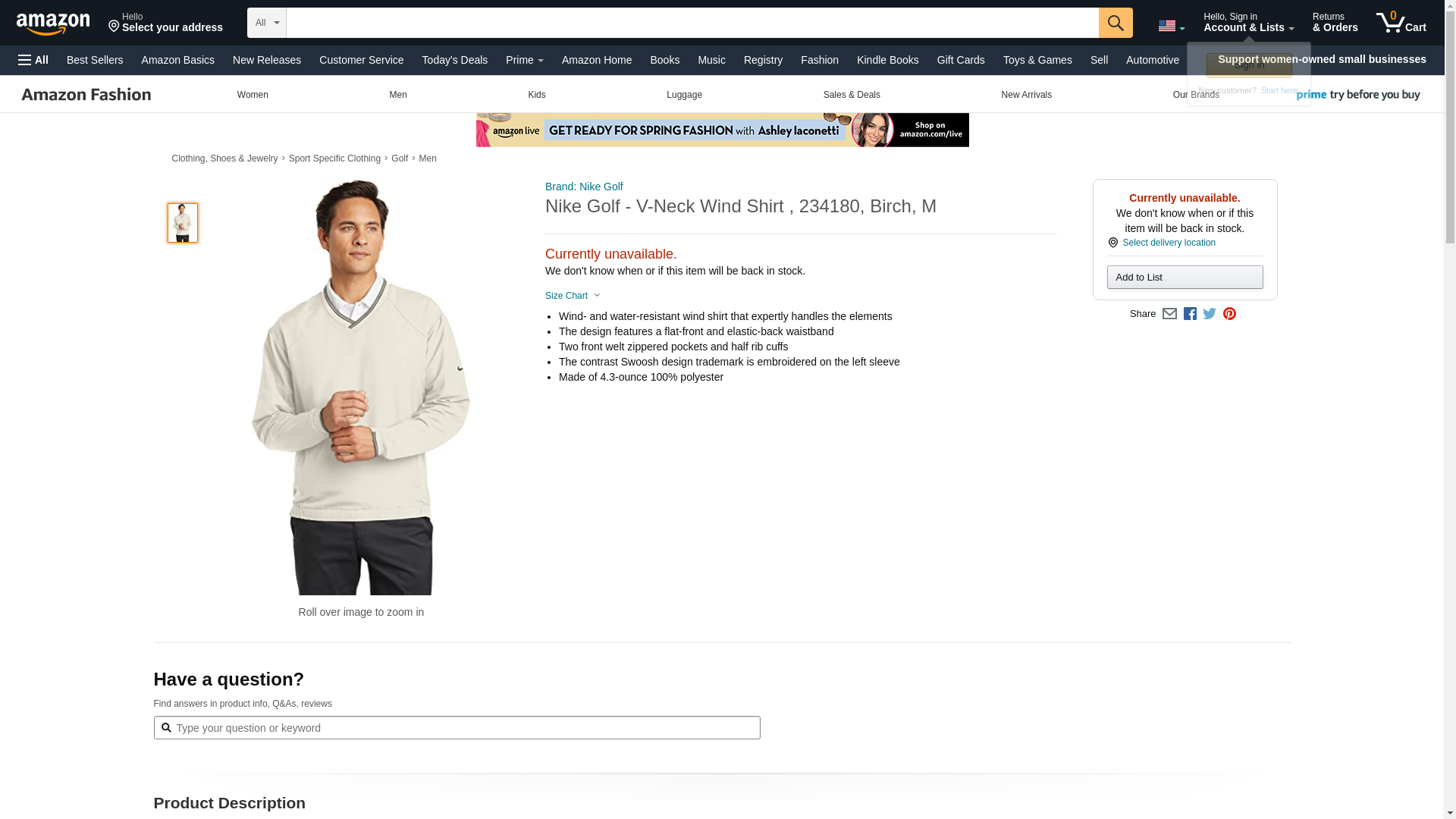 Nike Golf - V-Neck Wind Shirt , 234180, Birch, M