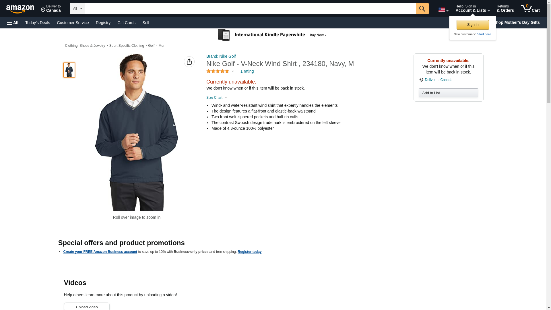 Nike Golf - V-Neck Wind Shirt , 234180, Navy, M