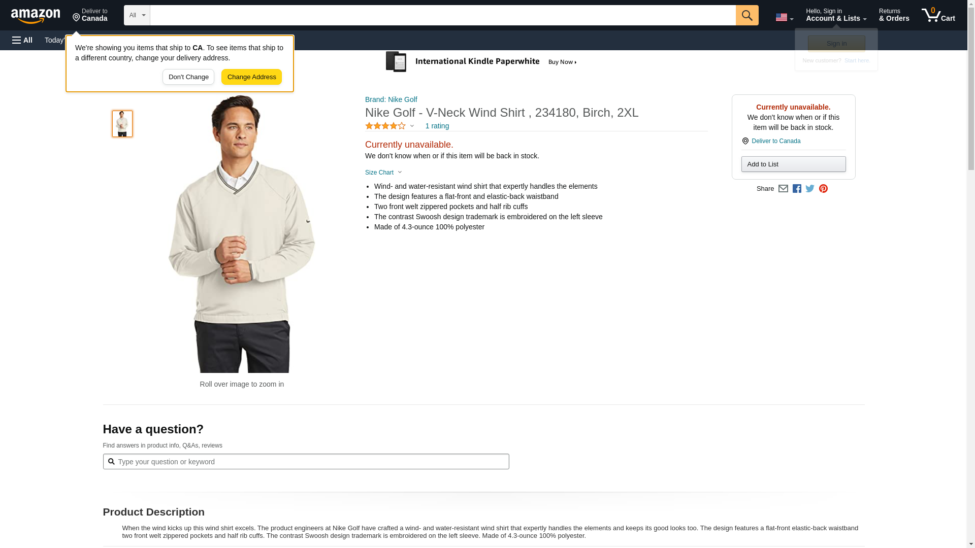 Nike Golf - V-Neck Wind Shirt , 234180, Birch, 3XL