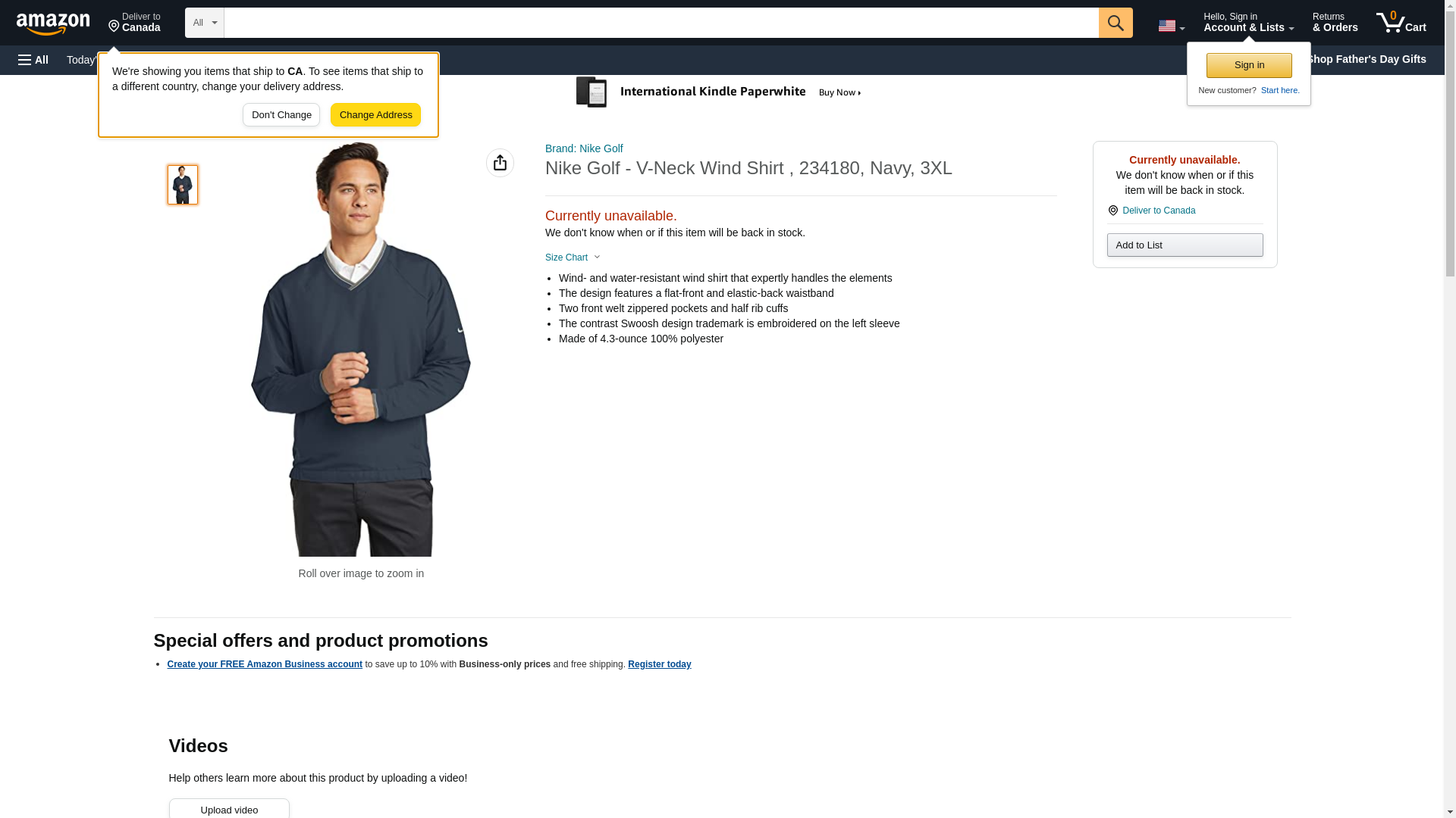 Nike Golf - V-Neck Wind Shirt , 234180, Navy, 3XL