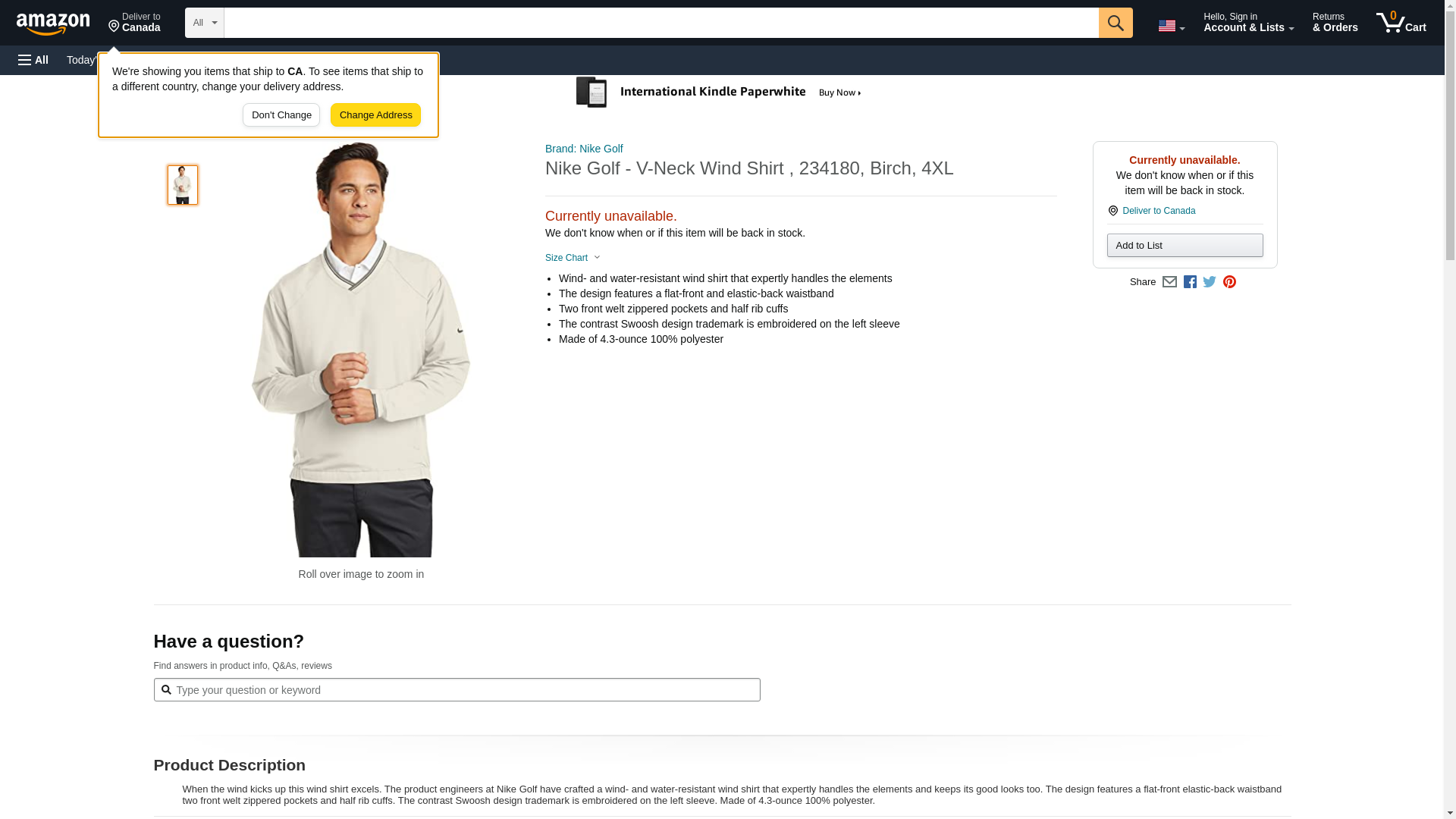 Nike Golf - V-Neck Wind Shirt , 234180, Birch, 4XL