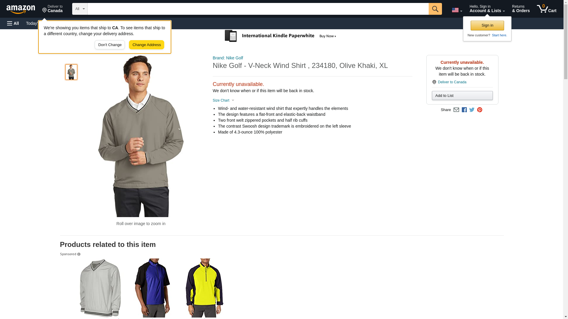 Nike Golf - V-Neck Wind Shirt , 234180, Olive Khaki, 4XL