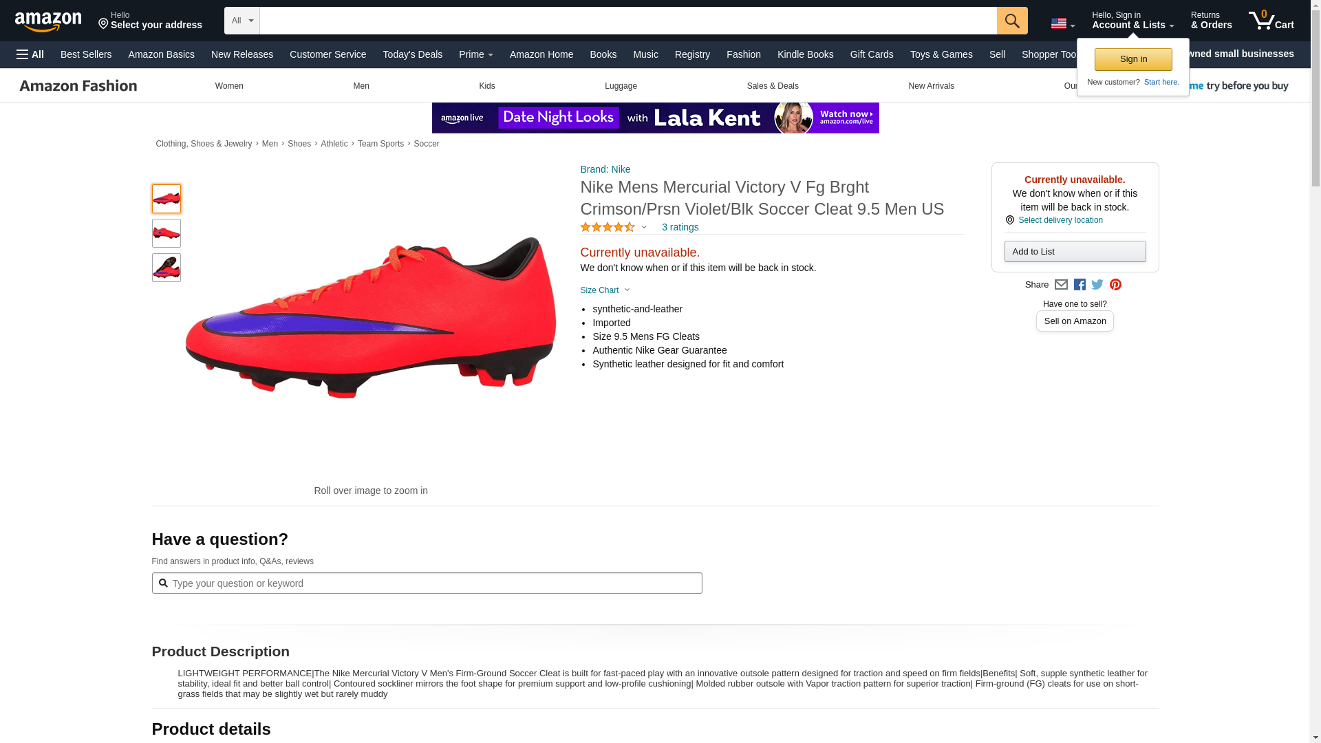 Nike Men's Mercurial Victory V Fg Brght Crimson/PRSN Violet/Blk Soccer Cleat 8.5 Men US