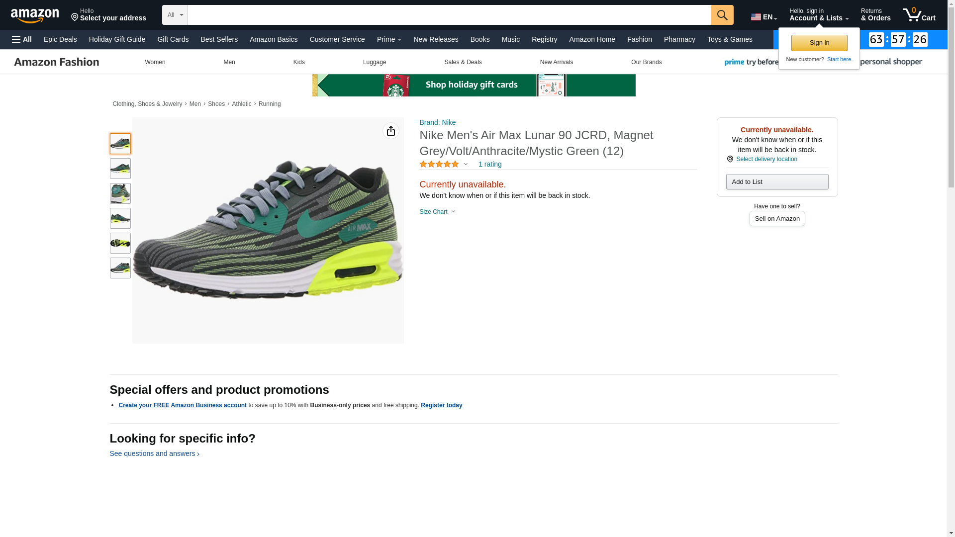 Nike Mens Air Max Lunar 90 JCRD, Magnet Grey/Volt/Anthracite/Mystic Green (12.5)