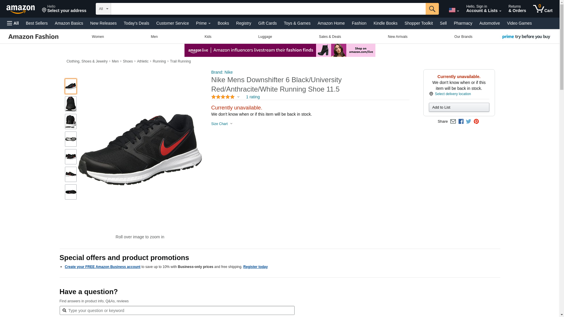 Nike Mens Downshifter 6 Black/University Red/Anthracite/White Running Shoe 11.5 Men US