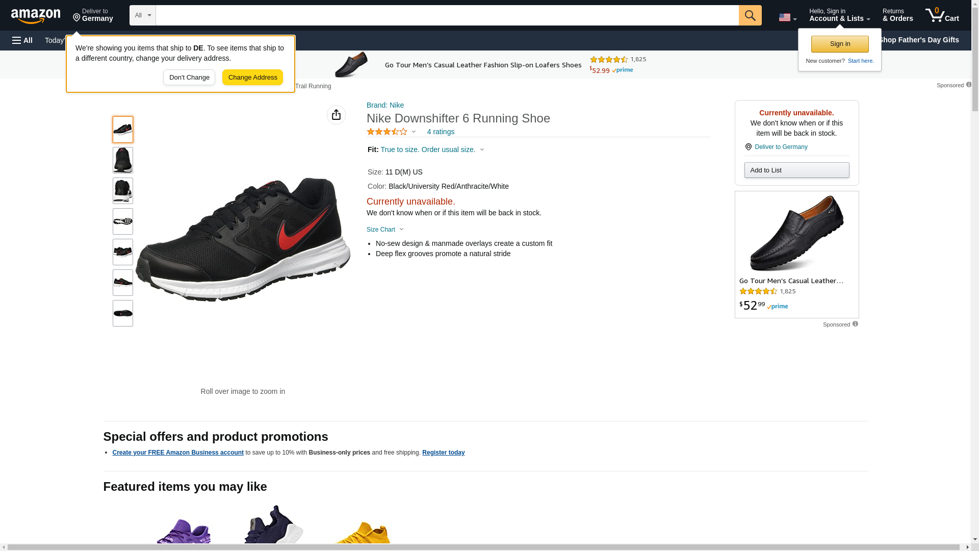 New Nike Men's Downshifter 6 Running Shoe Black/Red 14