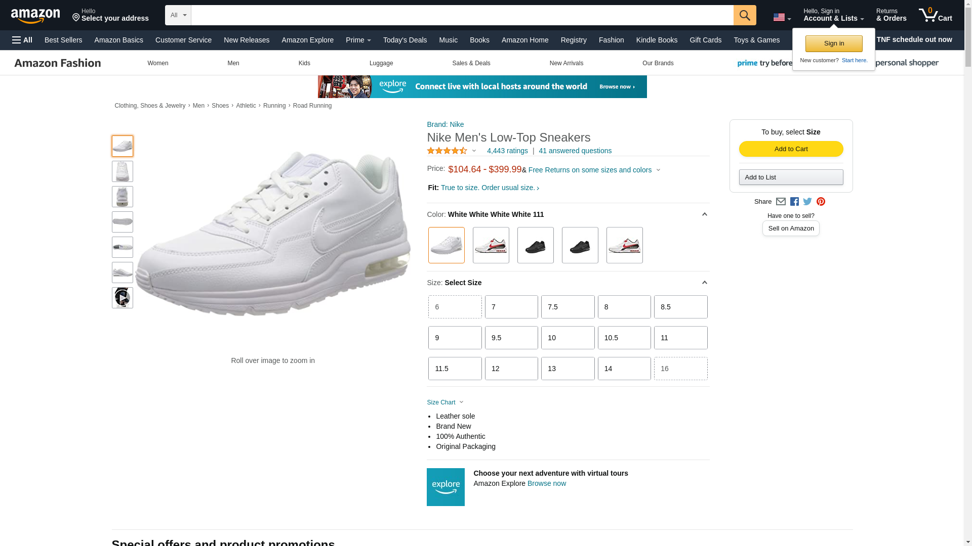 Nike Men's Low-Top Sneakers , White 111 , 7.5 US