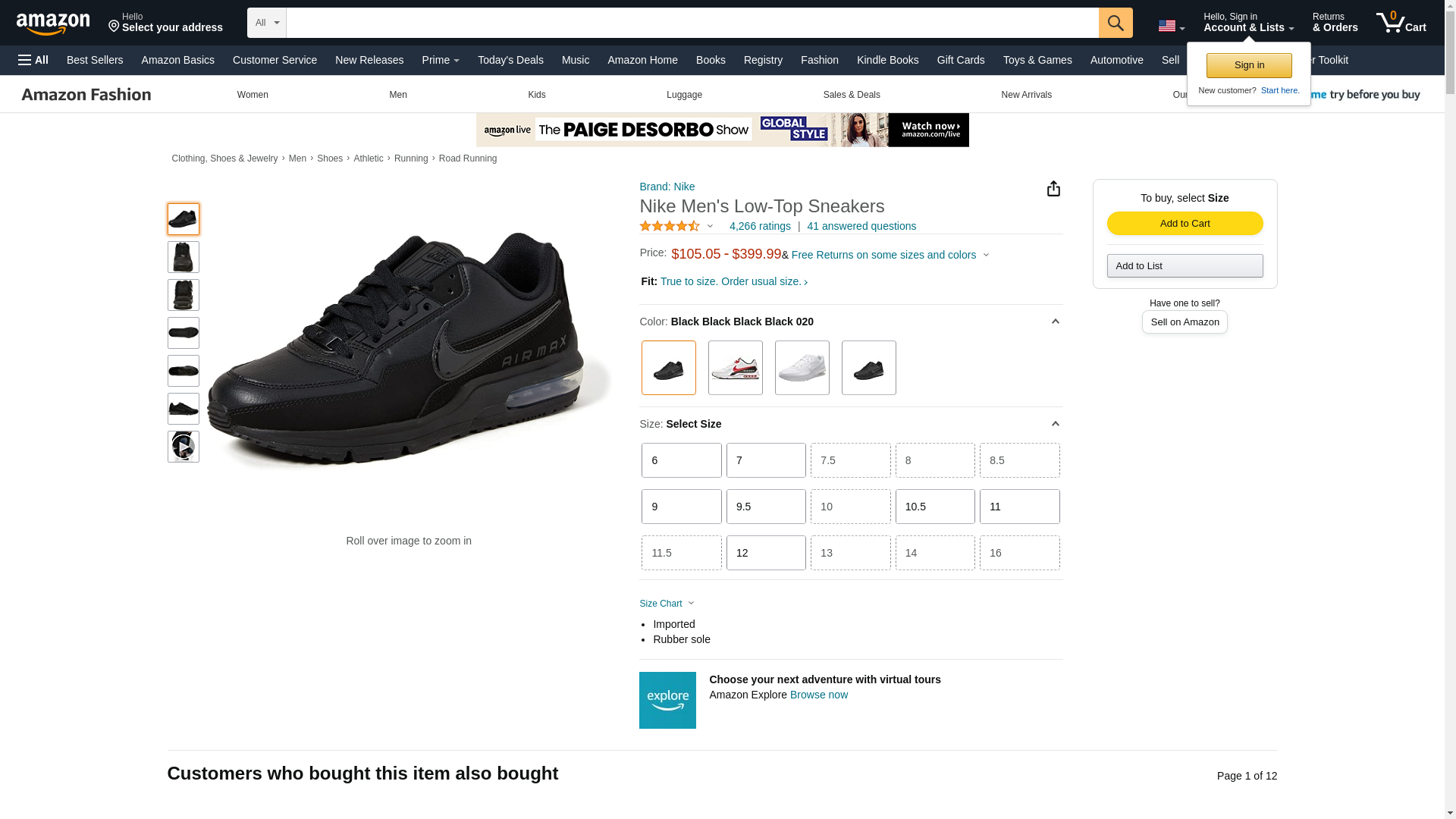 Nike Mens Air Max Ltd 3 Low Top Lace Up Running, Black/Black-Black, Size 12.5