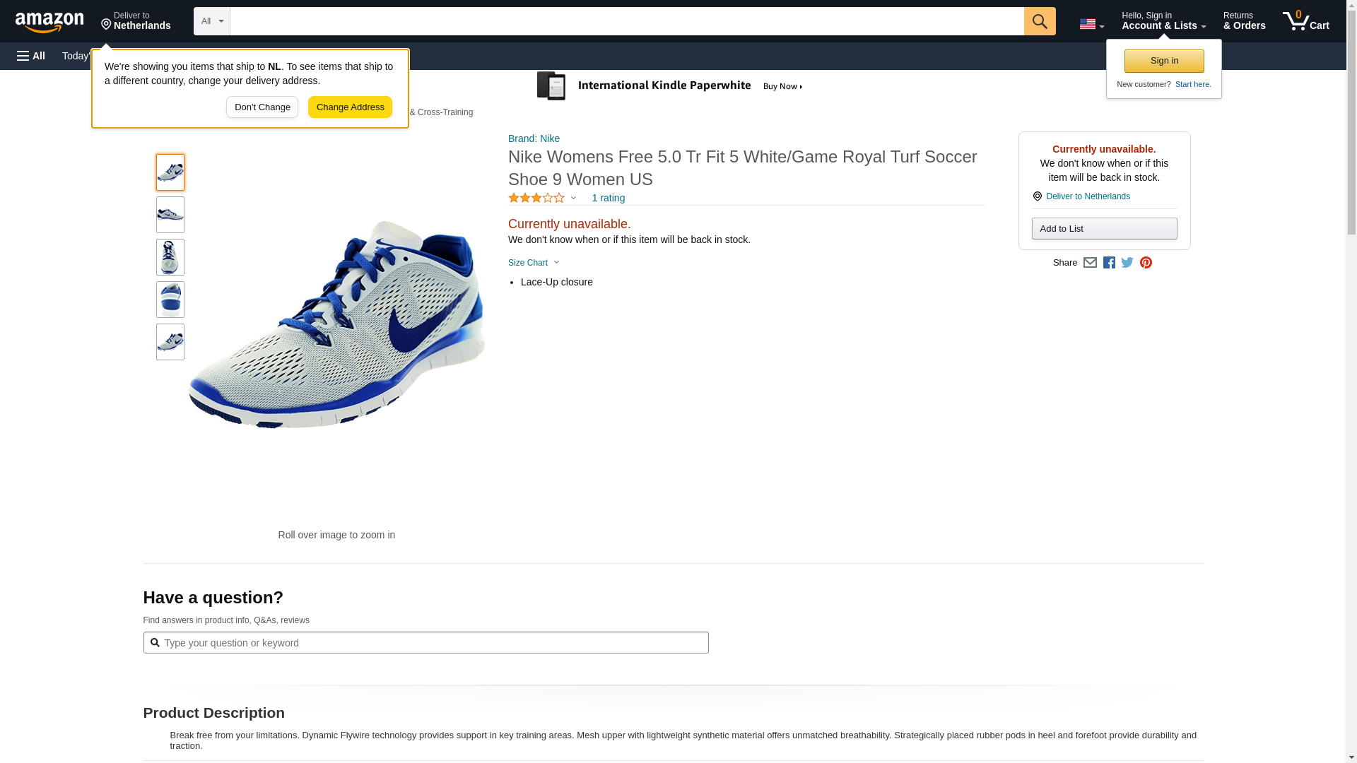 NIKE Womens Free 5.0 Tr Fit 5 White/Game Royal Turf Soccer Shoe 10 Women US…