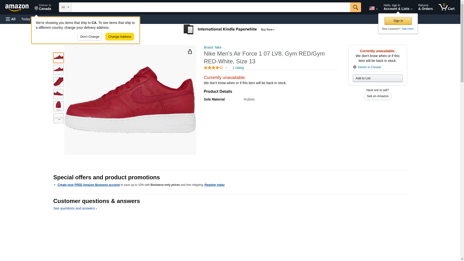 Nike Men's Air Force 1 07 LV8, Gym Red/Gym Red-White, Size 13