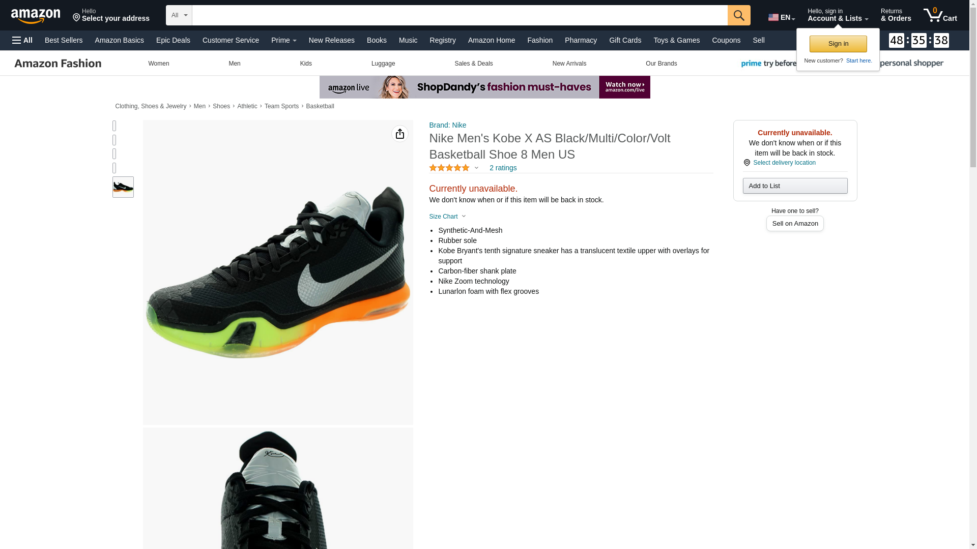 Nike Men's Kobe X AS Black/Multi/Color/Volt Basketball Shoe 8 Men US