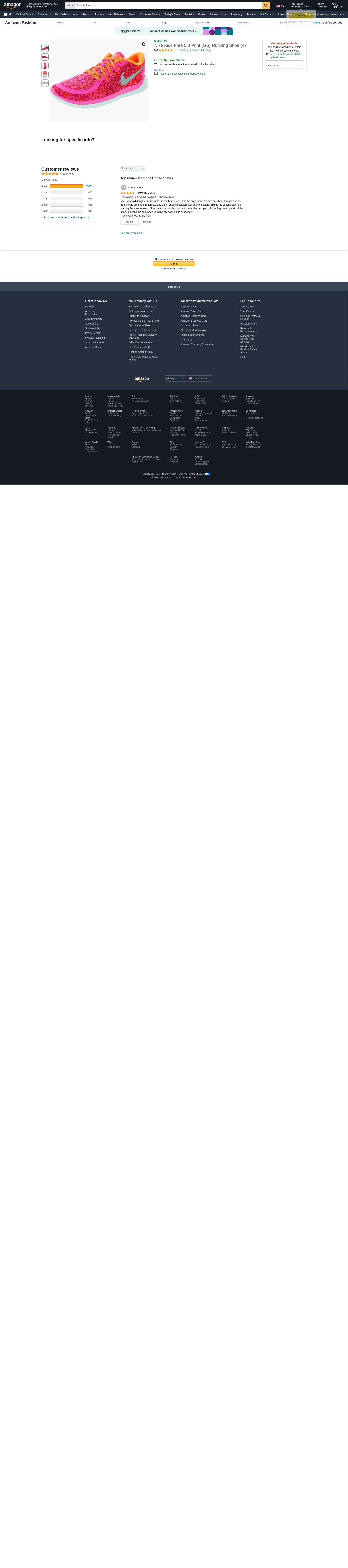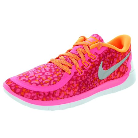 Nike Girl's Free 5.0 Print Running Shoe Pink Pow/Bright Citrus/Vivid Pink/Metallic Silver 4.5Y
