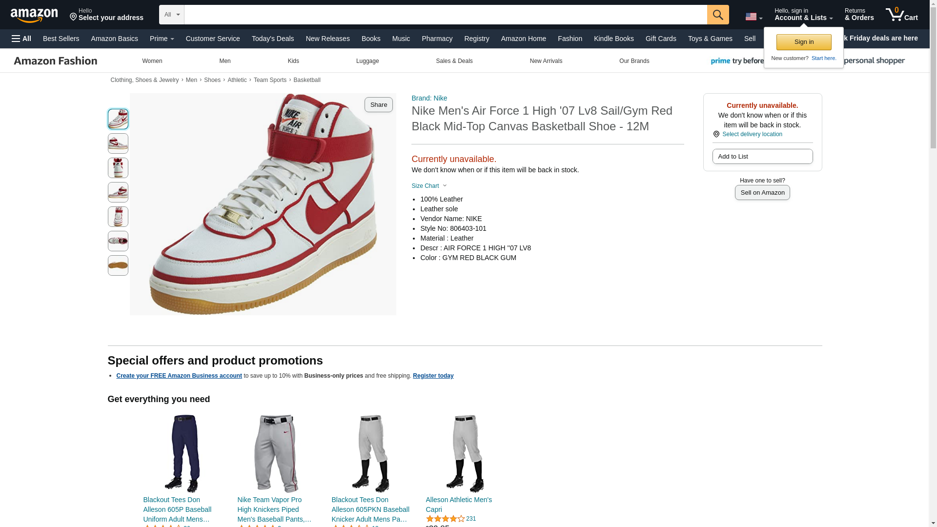 "NIKE Air Force 1 High '07 LV8 Men's Shoes Sail/Gym Red/Black 806403-101 (12 D(M) US)"