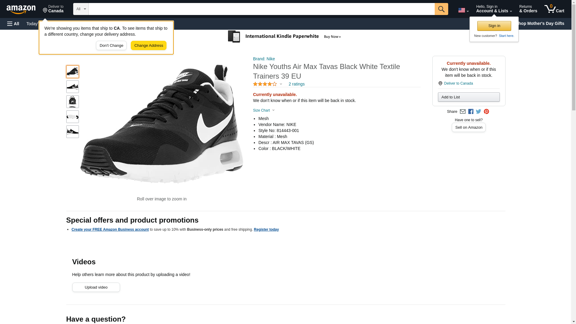 NIKE Kids Air Max Tavas (GS) Black/White Running Shoe 6.5 Kids US
