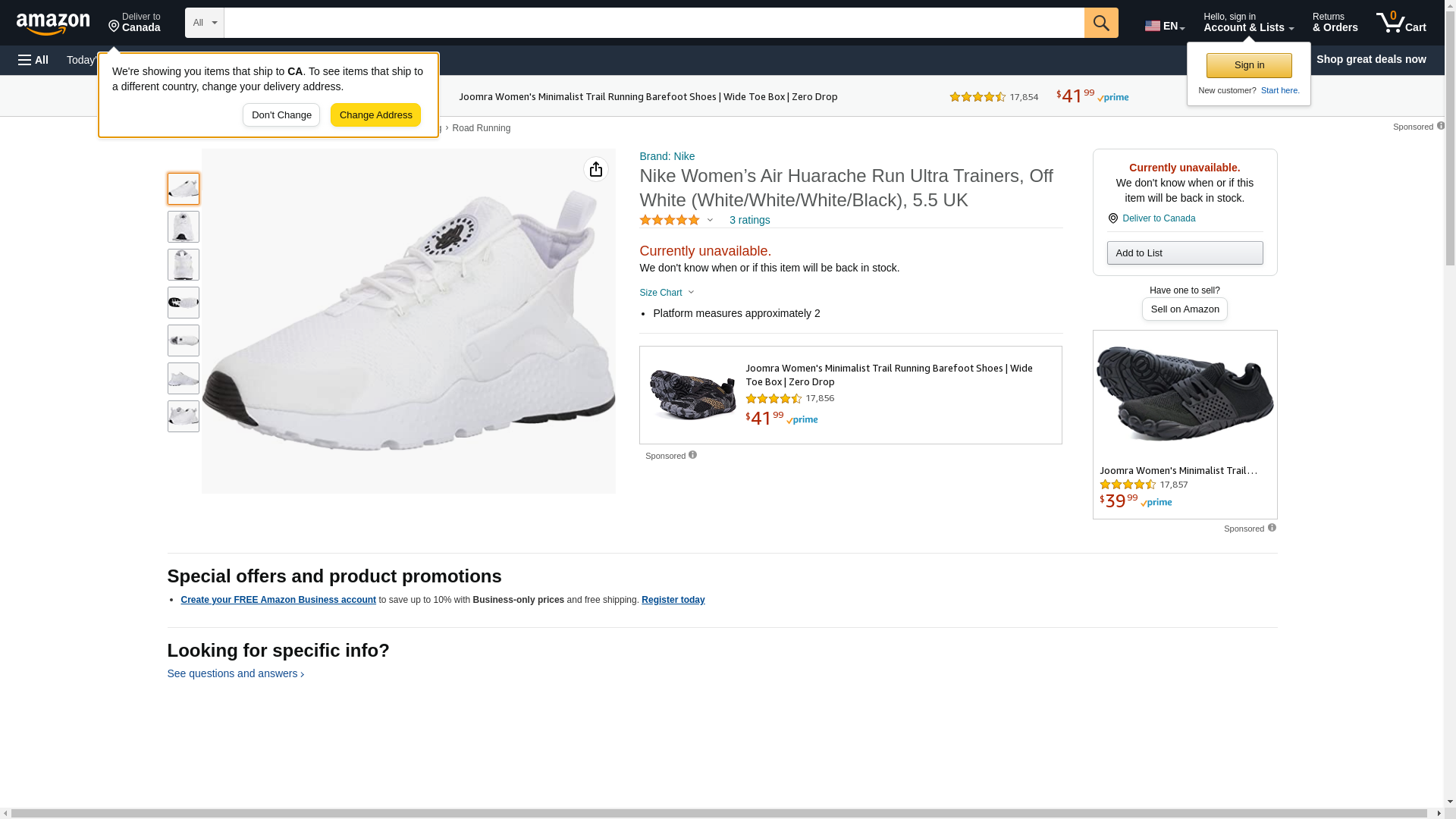 NIKE Air Huarache Run Ultra Women's Running Shoes White/White-White-Black 819151-102 (10.5 B(M) US)