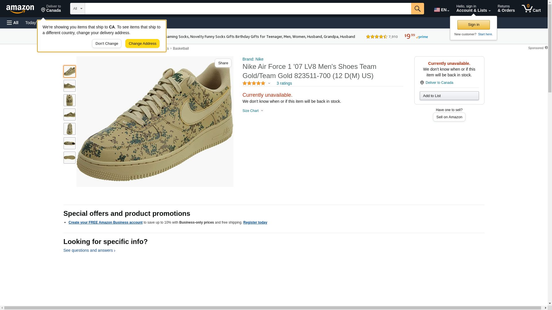 NIKE Mens Air Force 1 '07 Low Camo Shoes Team Gold/Golden Beige 823511-700 Size 11