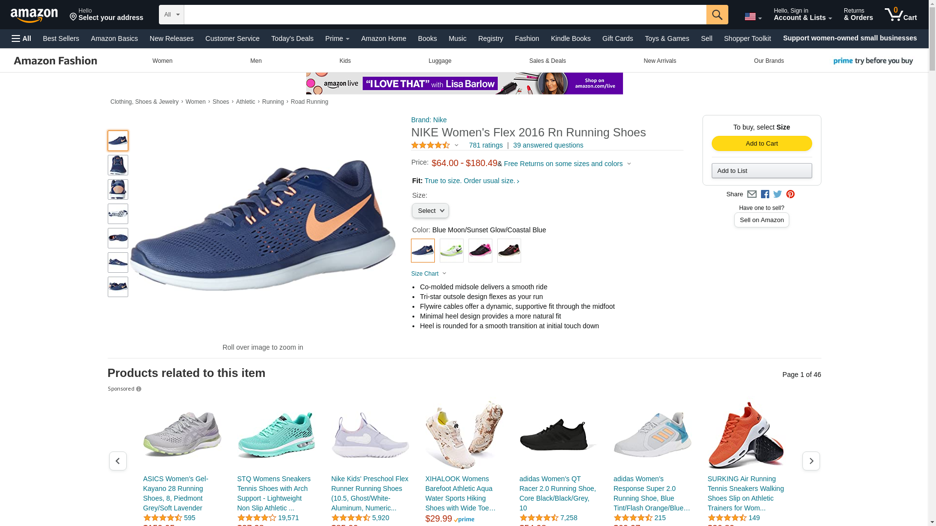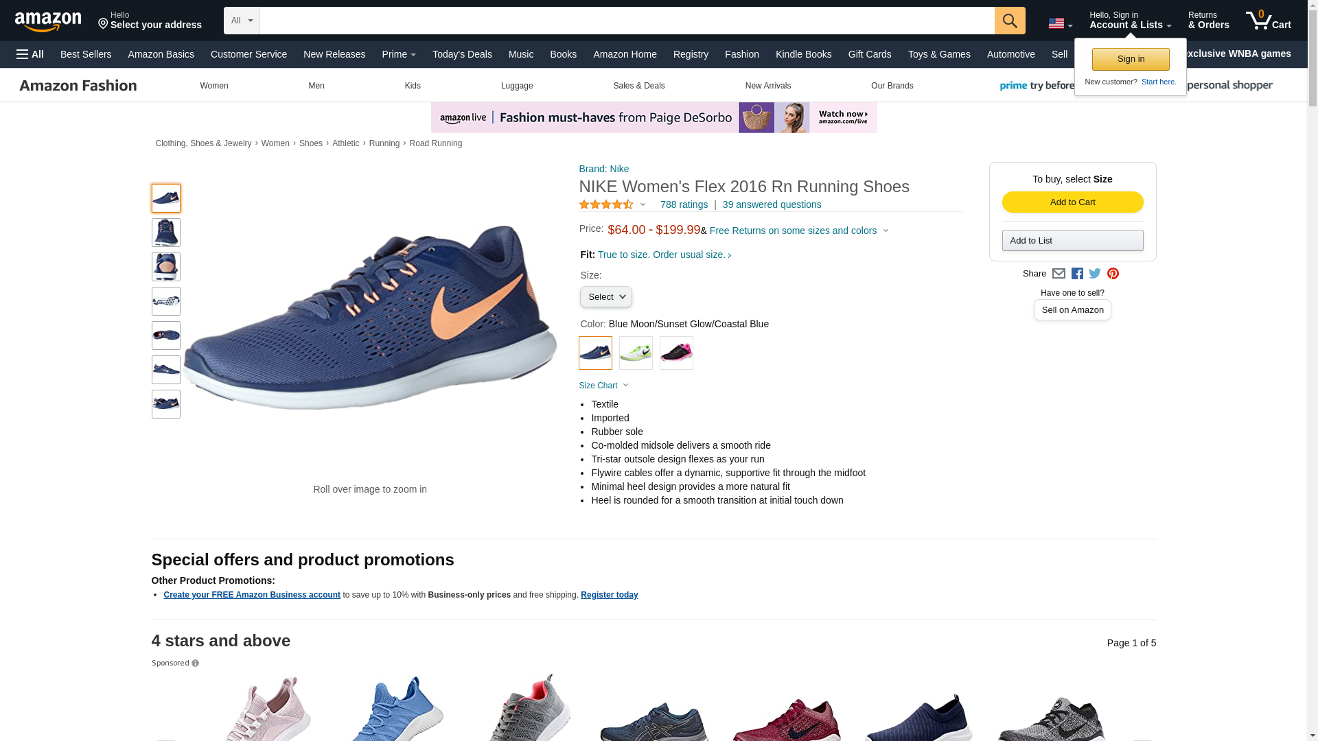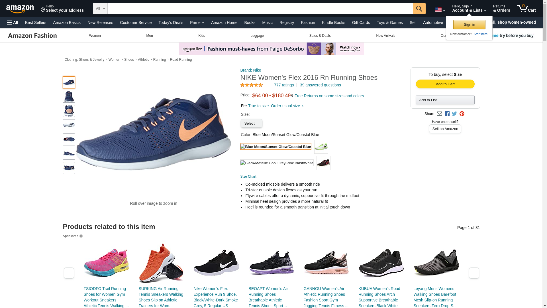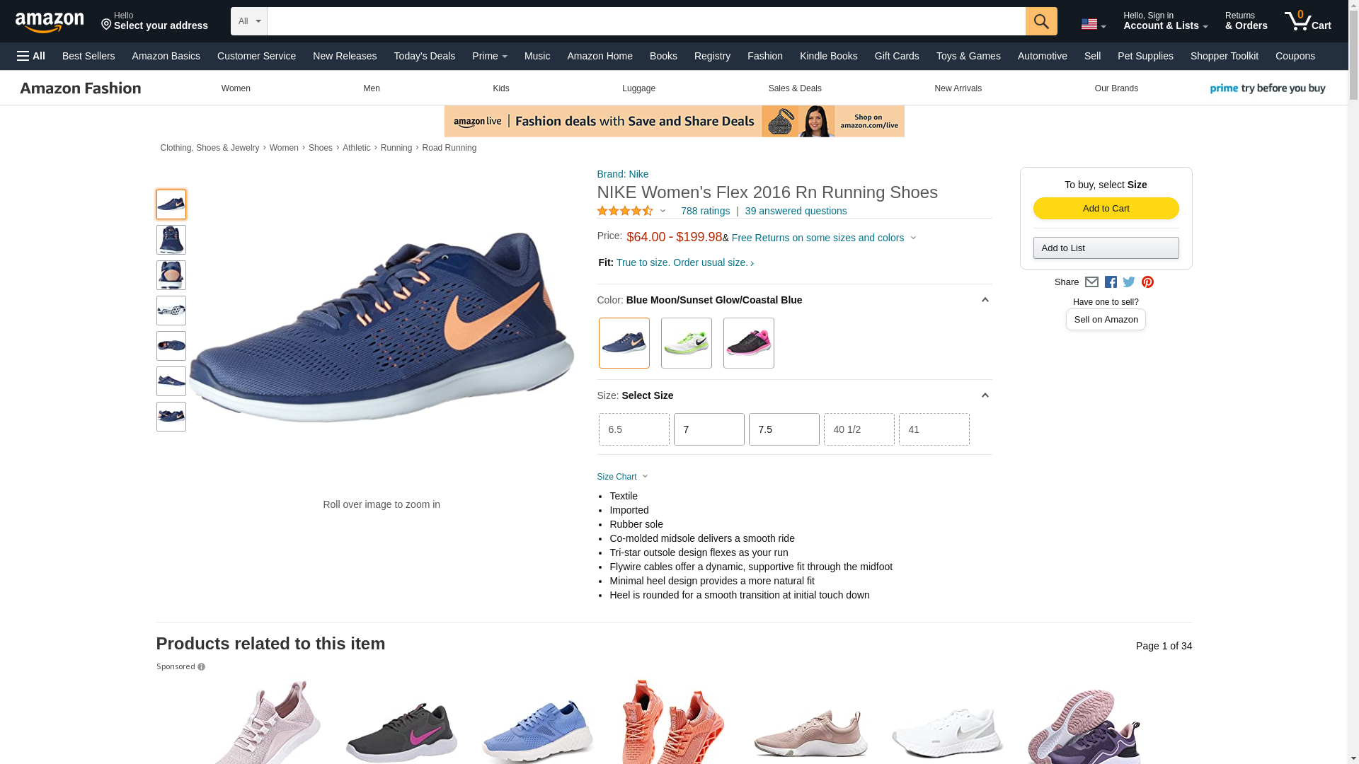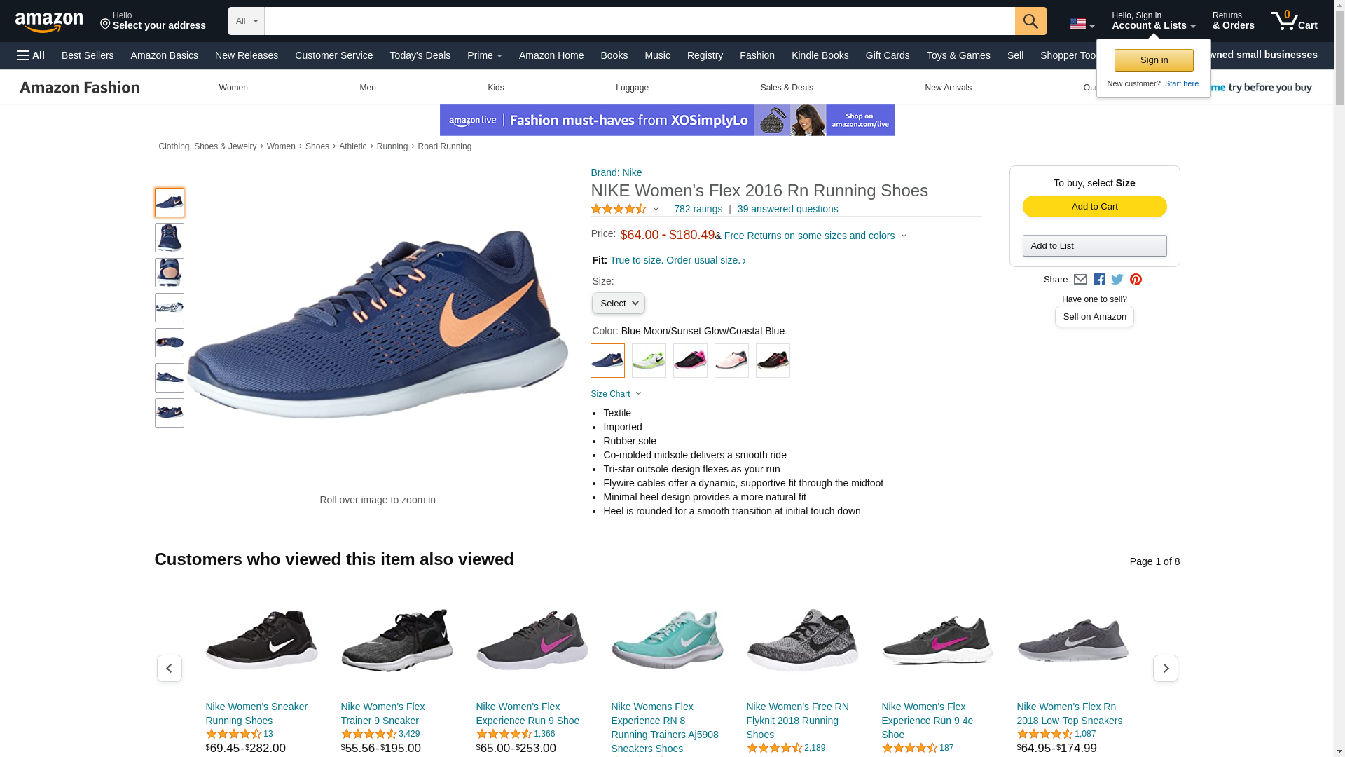NIKE Women's Flex 2016 RN Running Shoes (6 B(M) US, Blue Moon/Sunset Glow/Coastal Blue)