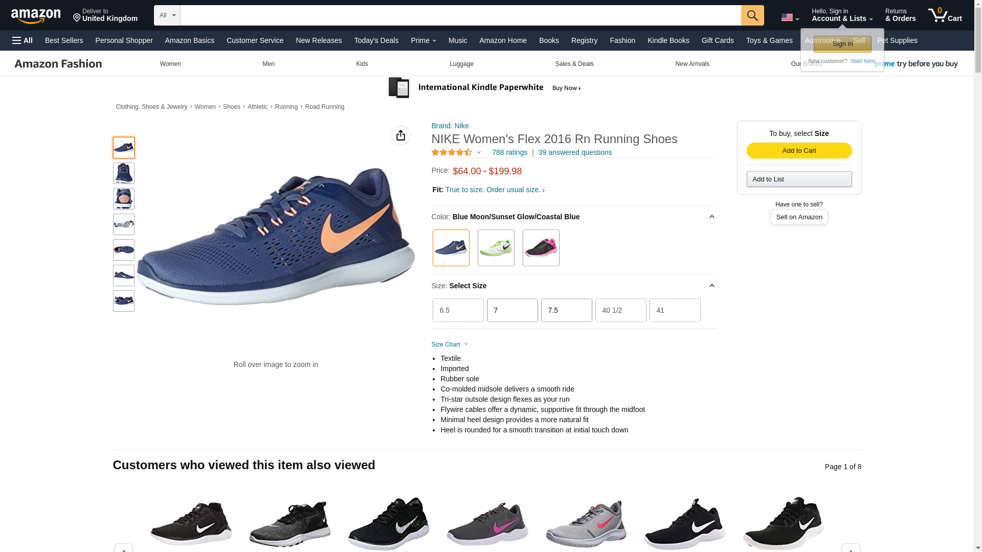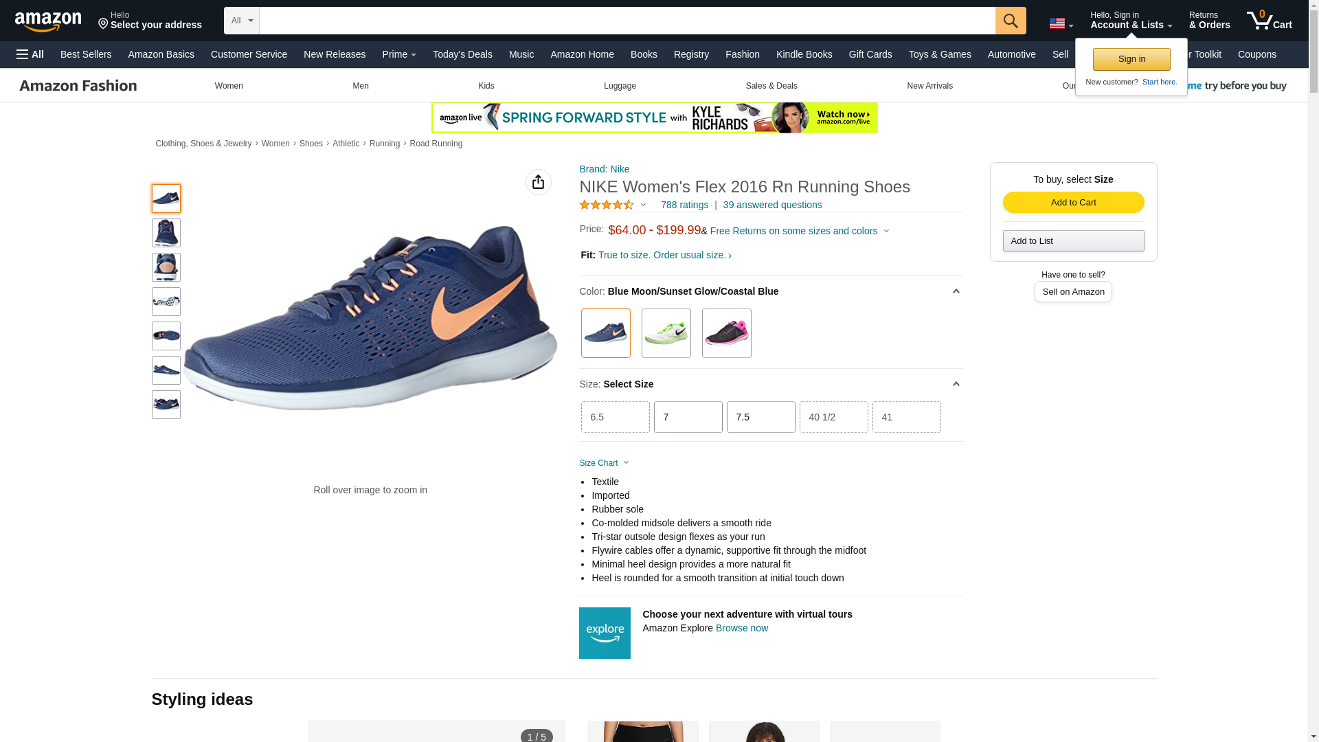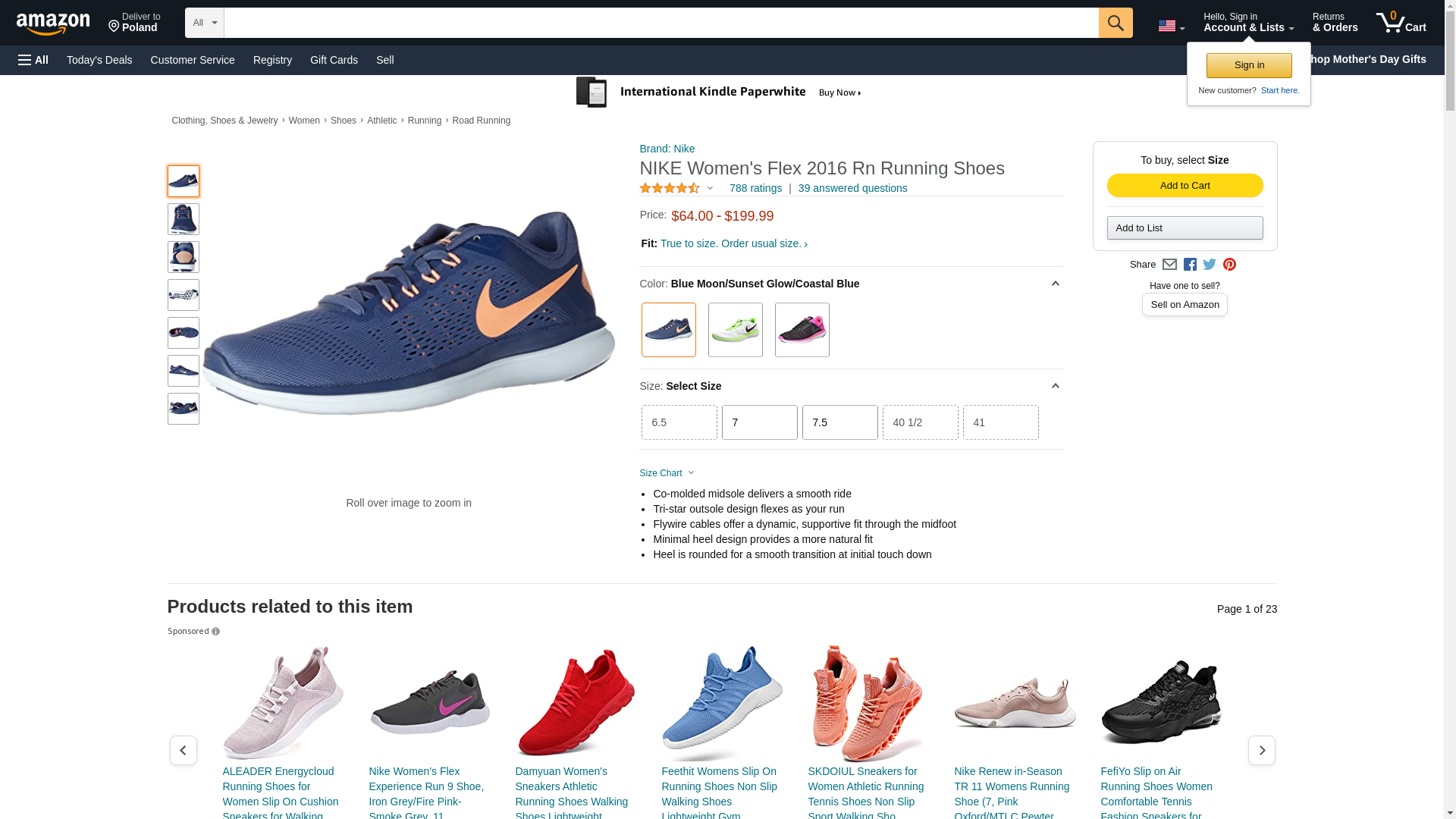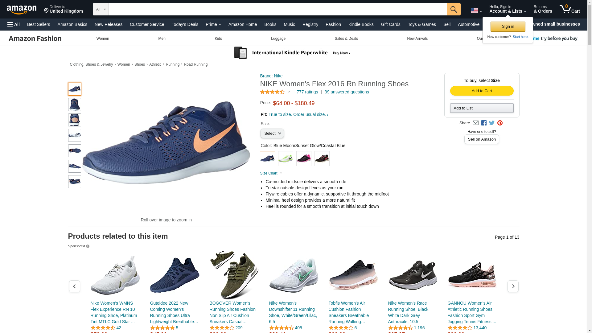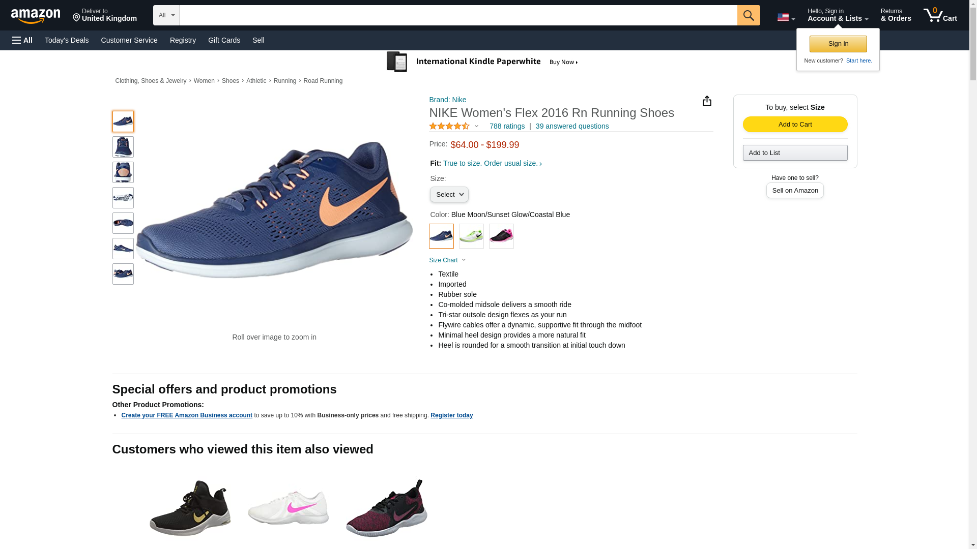 NIKE Women's Flex 2016 RN Running Shoes (6 B(M) US, Blue Moon/Sunset Glow/Coastal Blue)