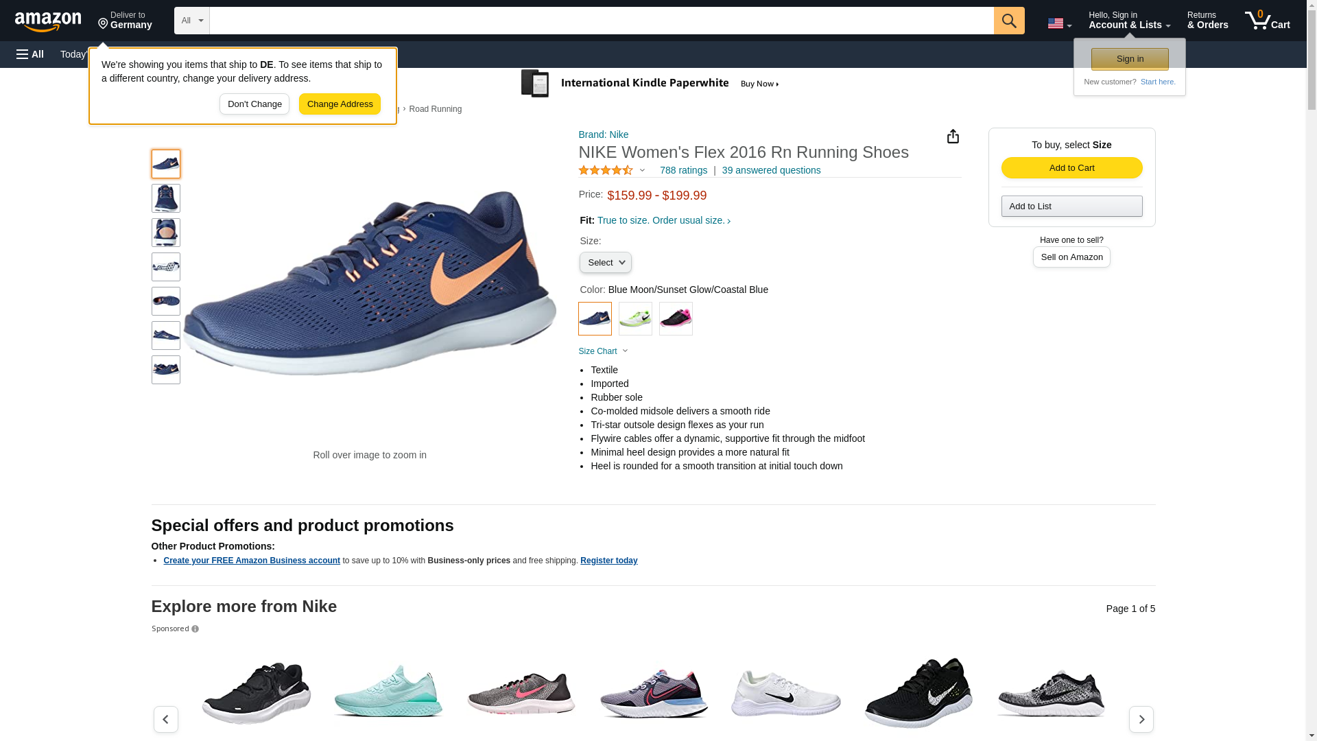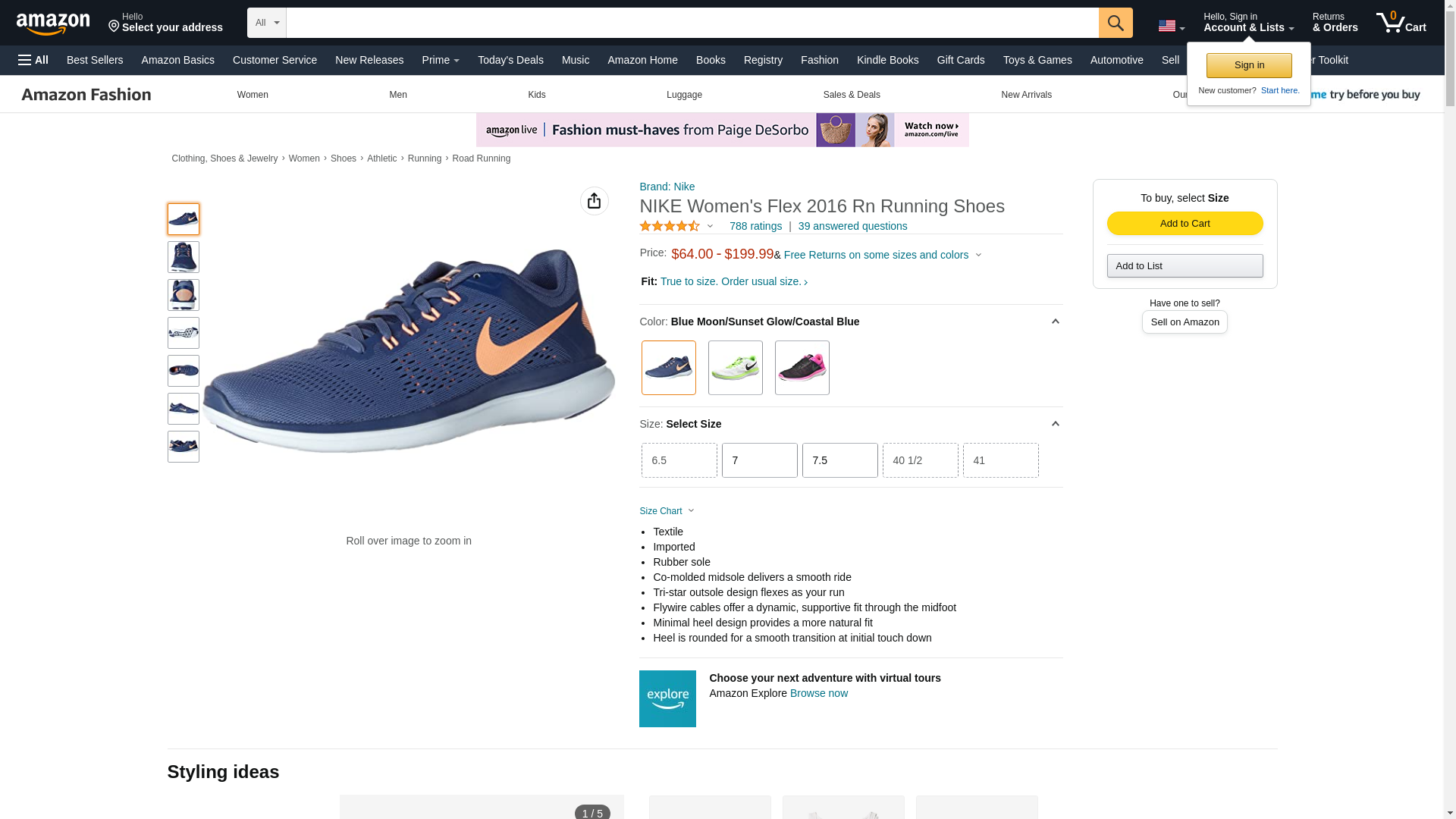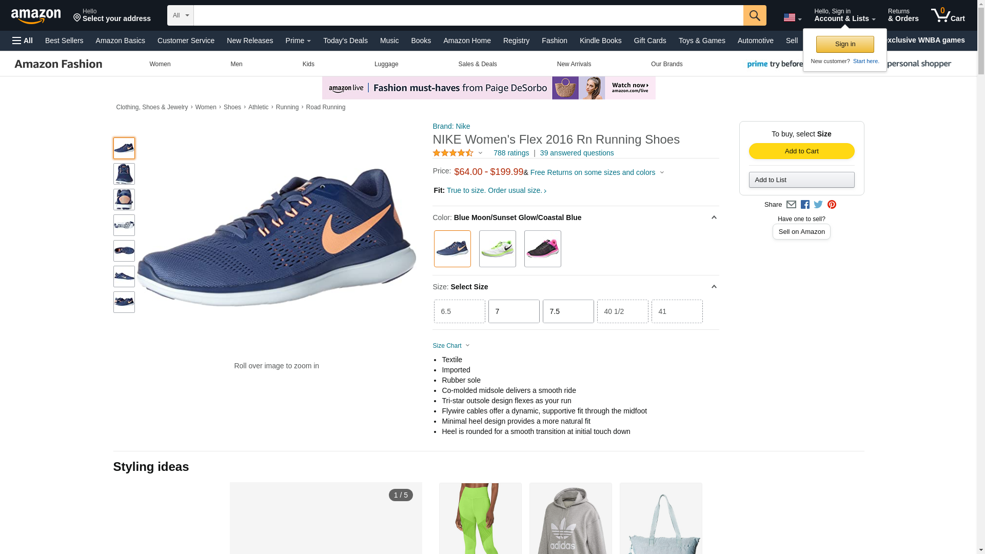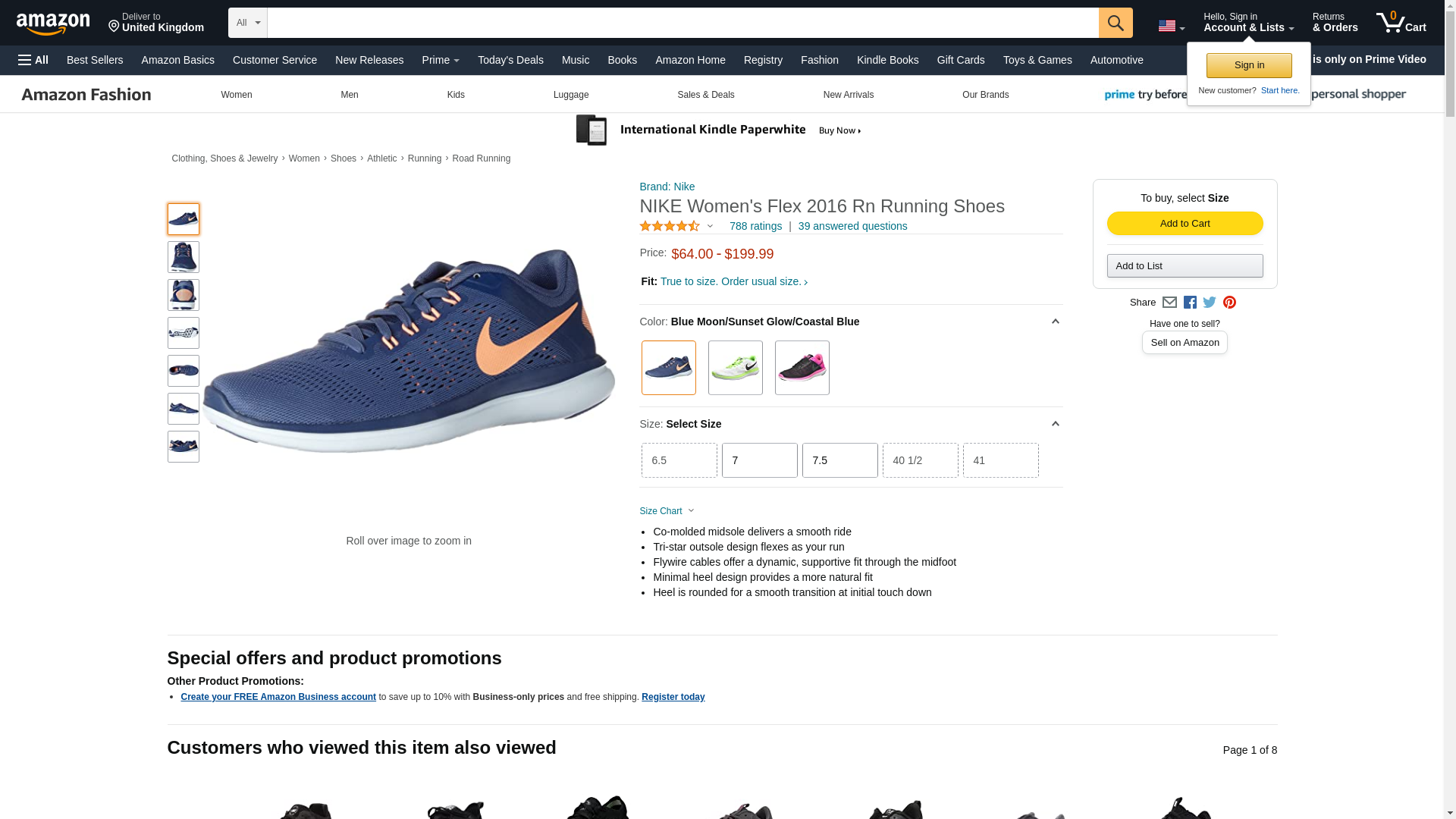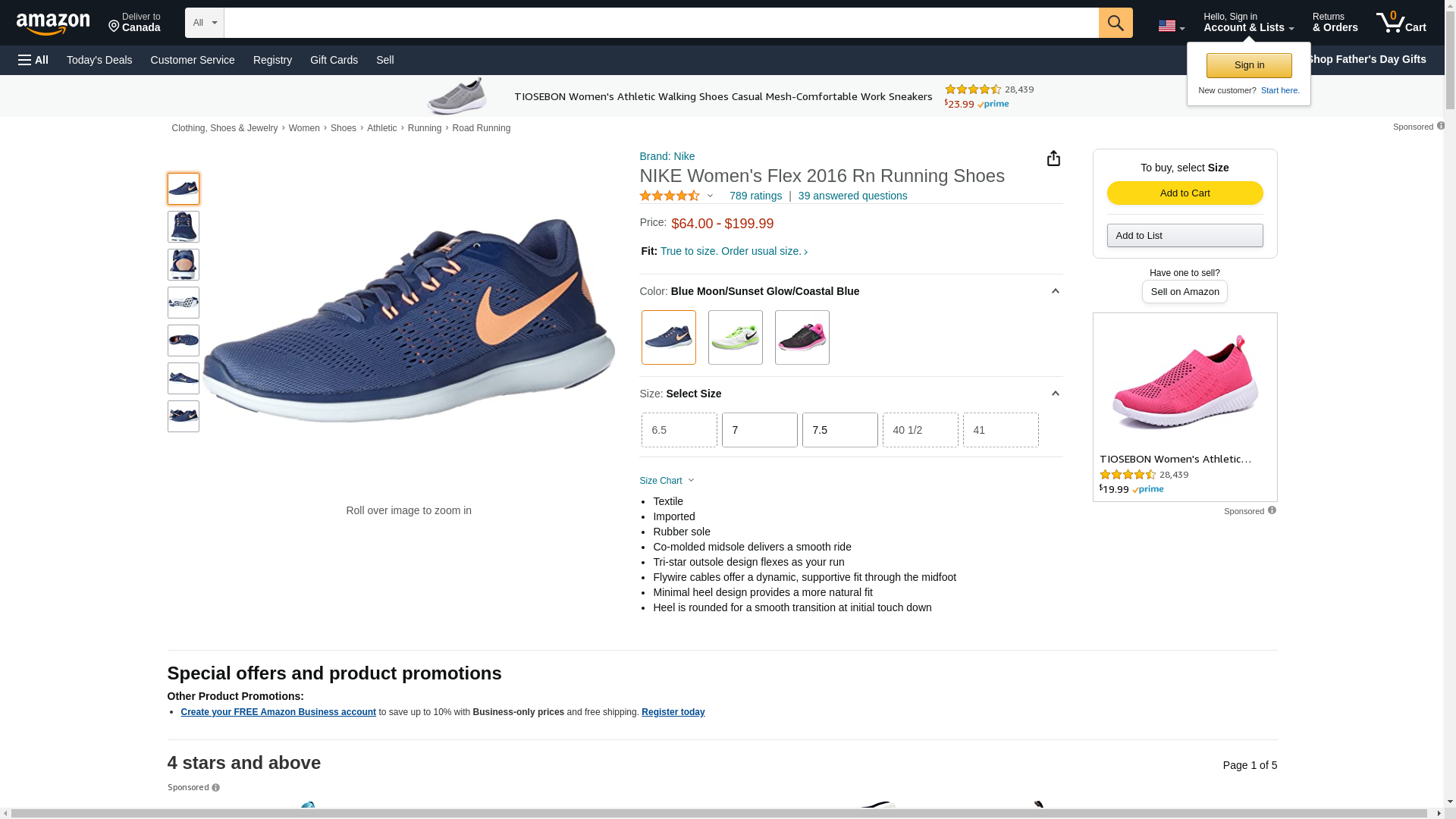 NIKE Women's Flex 2016 RN Running Shoes (6 B(M) US, Blue Moon/Sunset Glow/Coastal Blue)