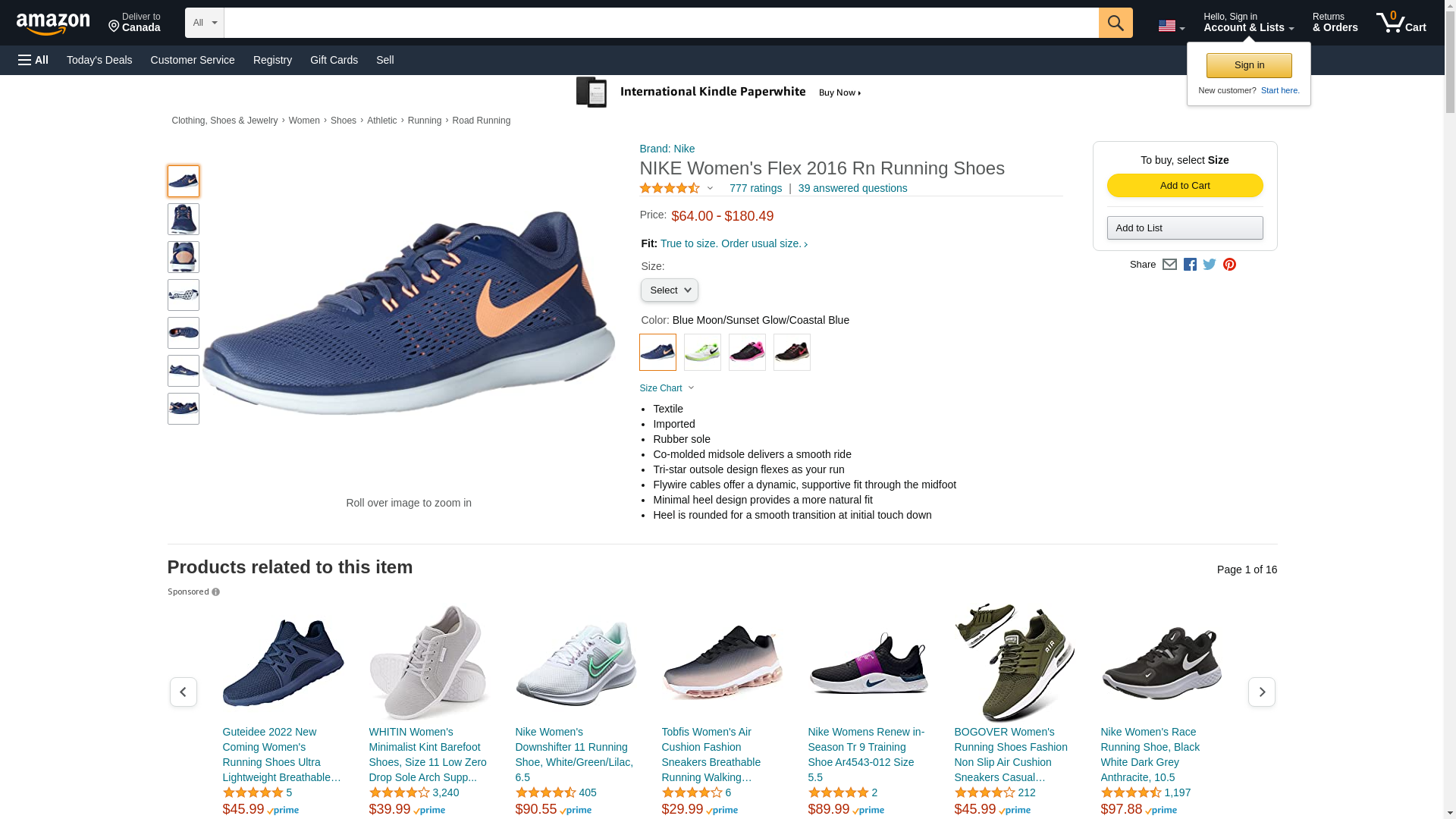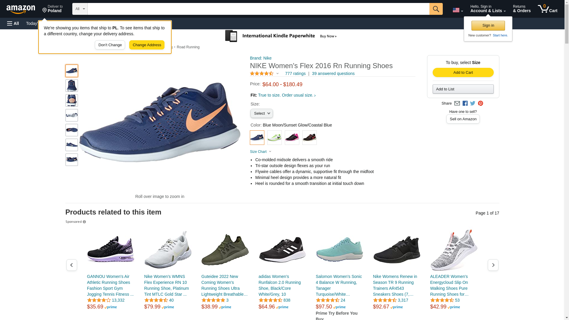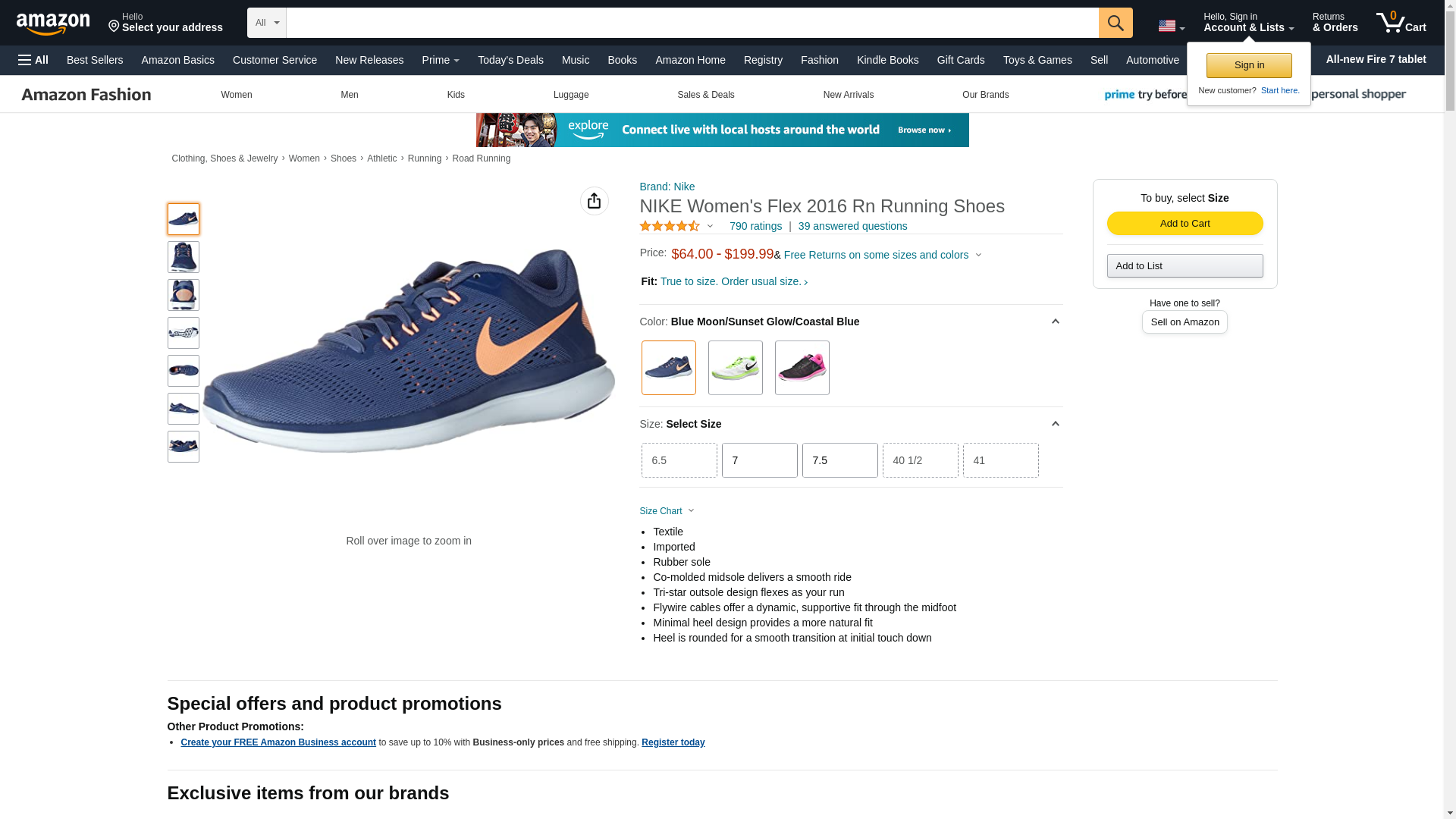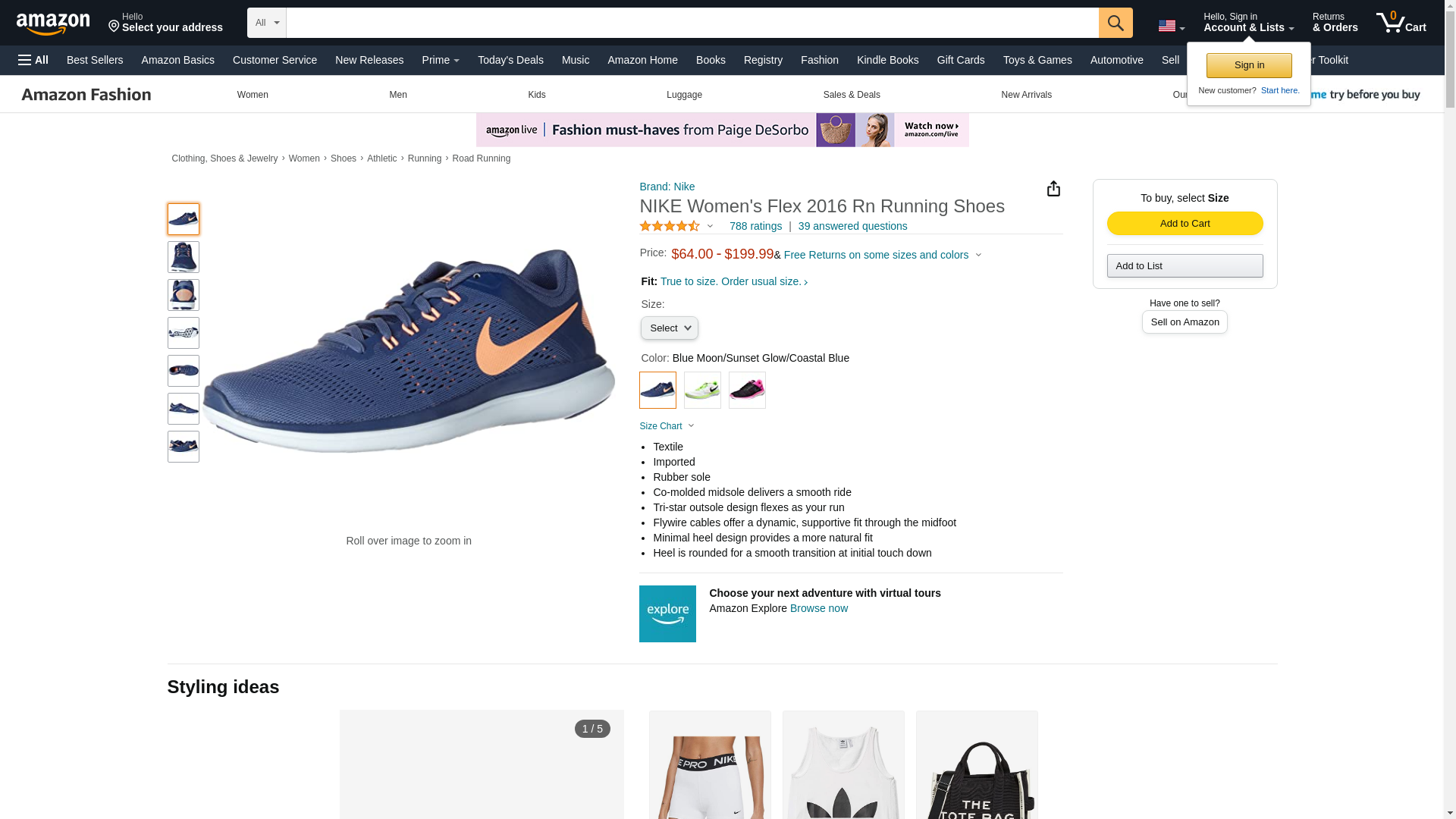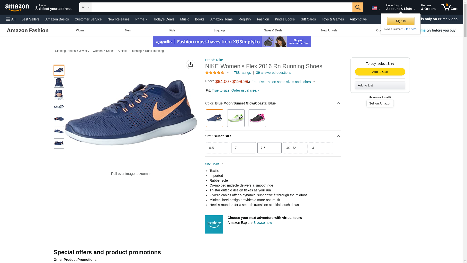 NIKE Women's Flex 2016 RN Running Shoes (6 B(M) US, Blue Moon/Sunset Glow/Coastal Blue)