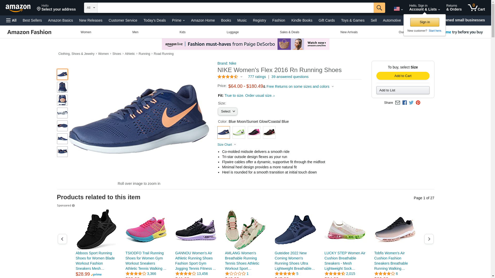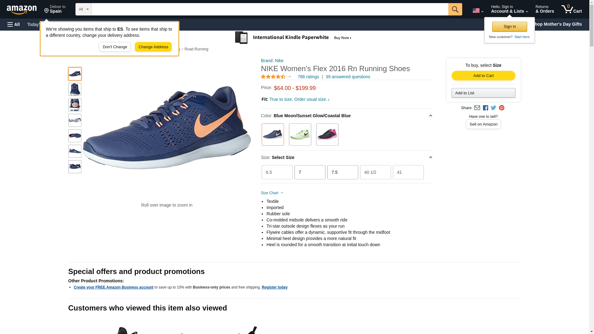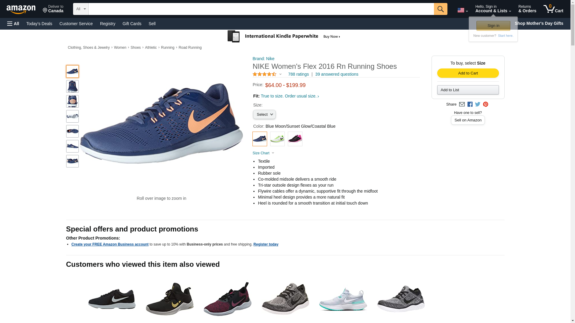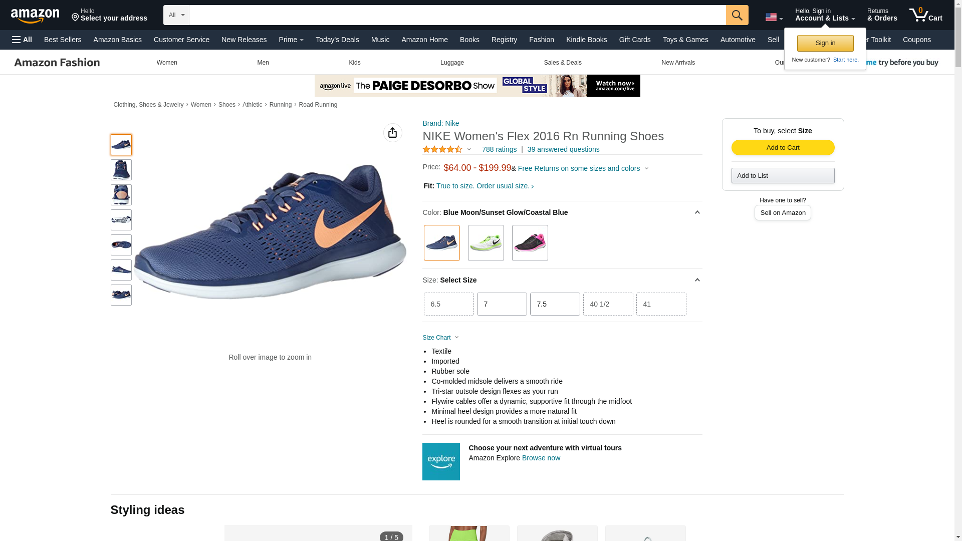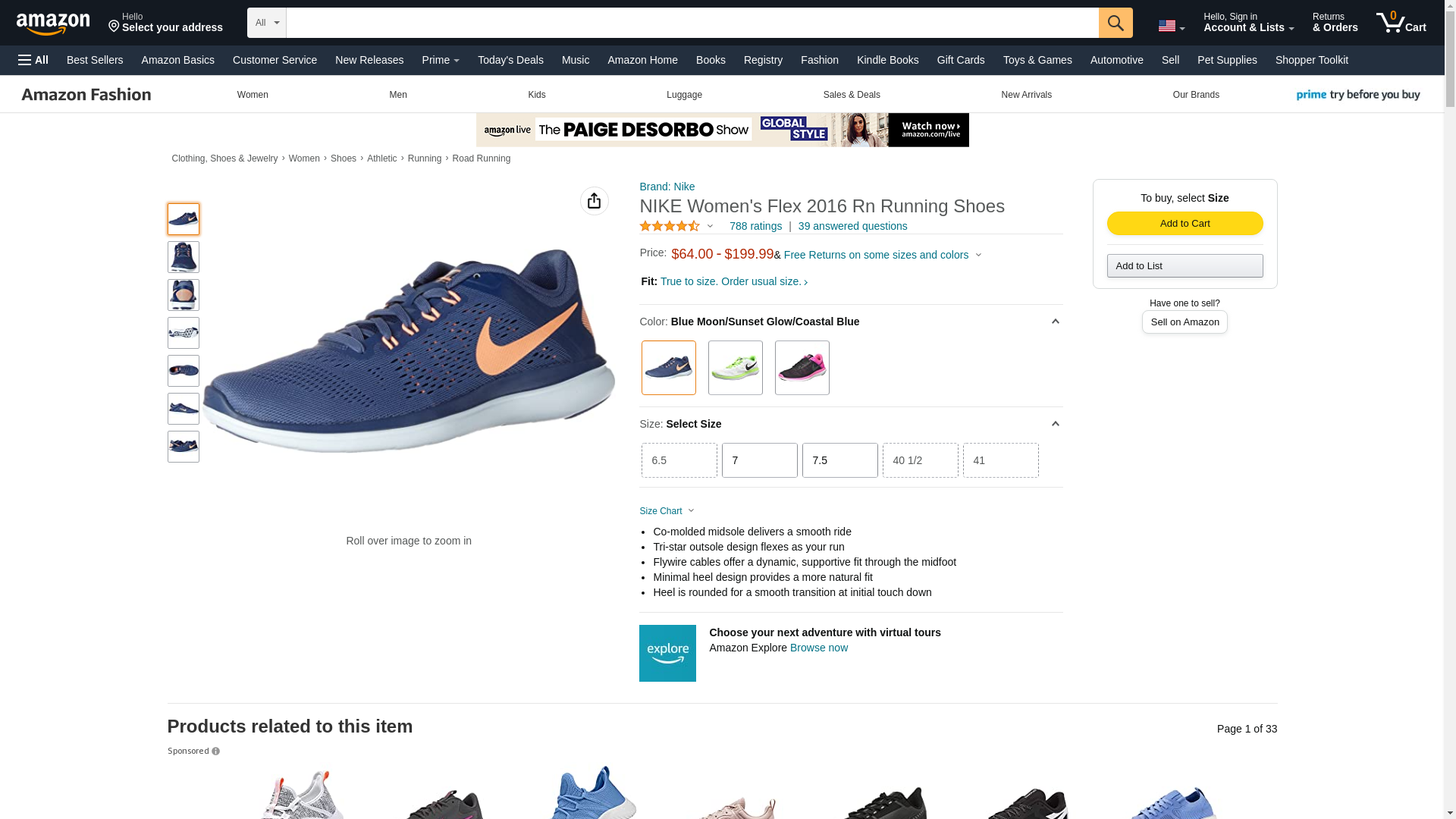 NIKE Women's Flex 2016 RN Running Shoes (6 B(M) US, Blue Moon/Sunset Glow/Coastal Blue)