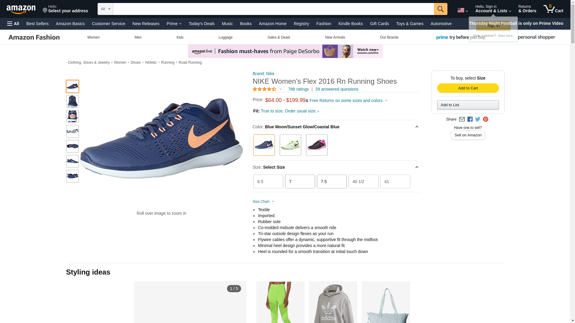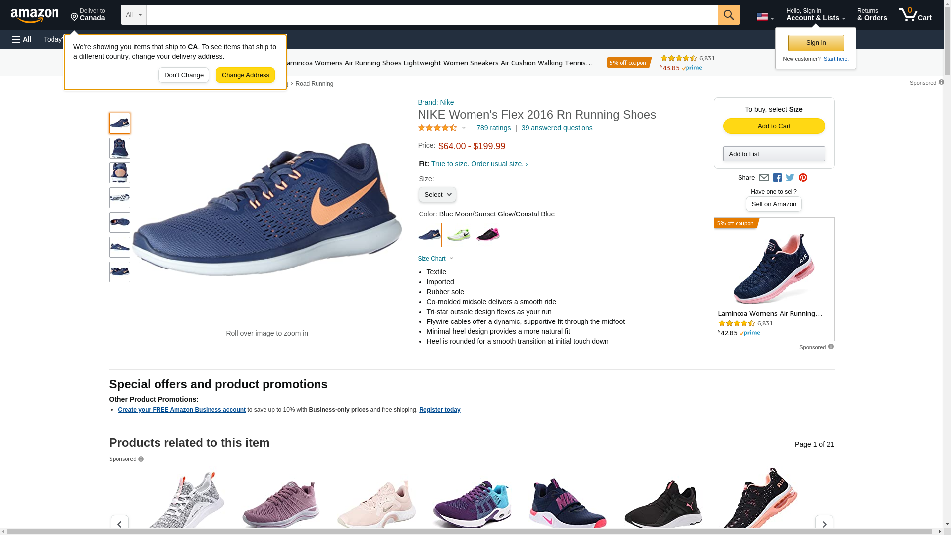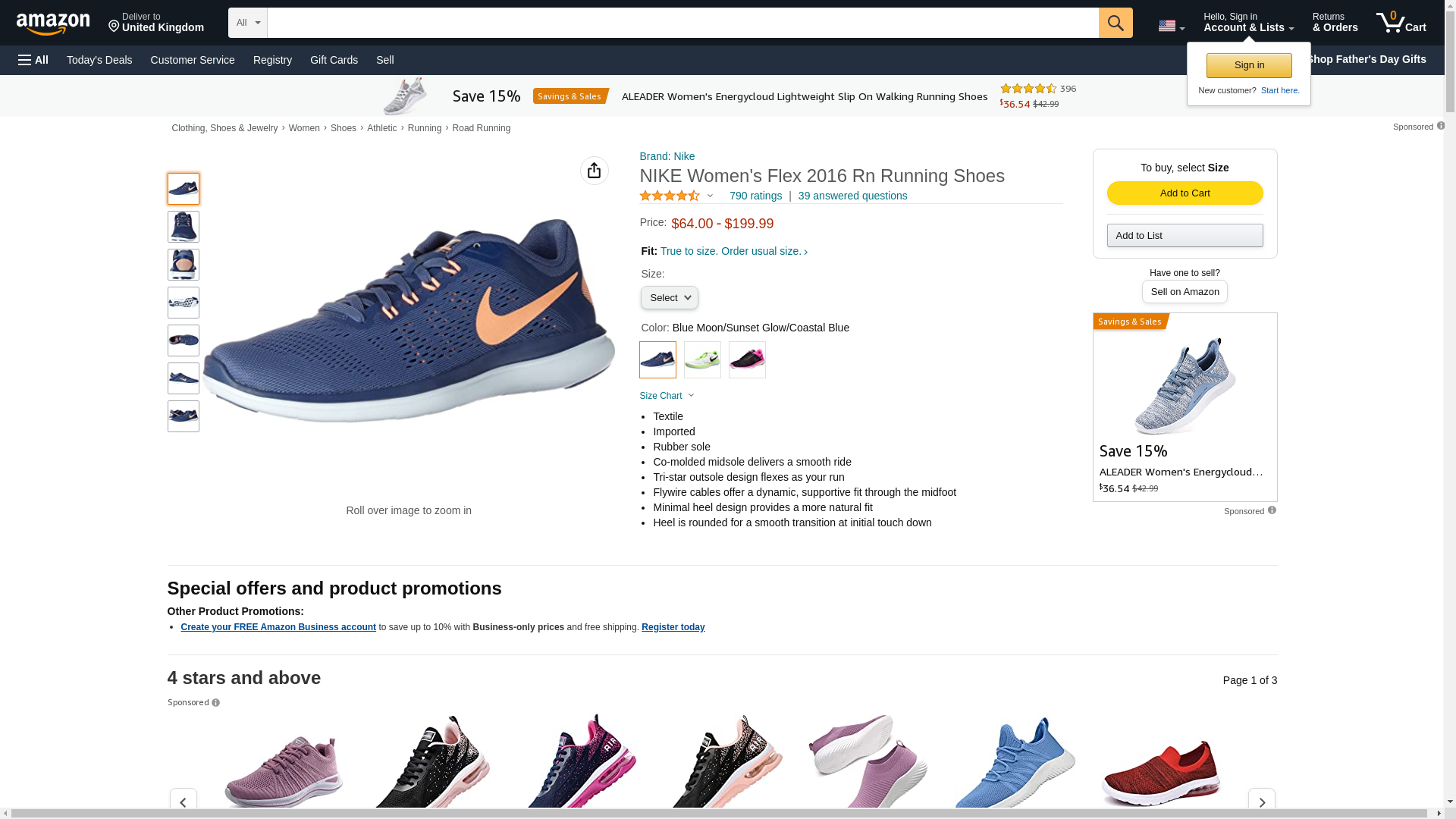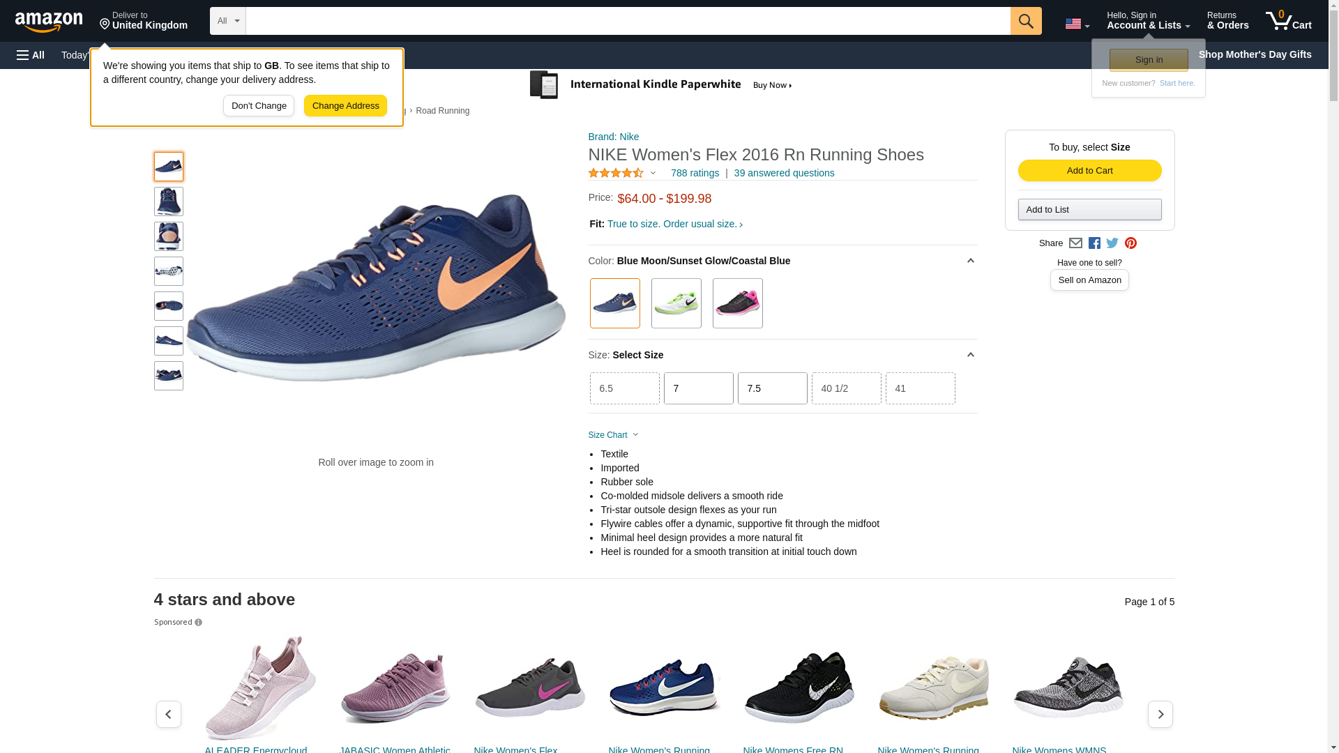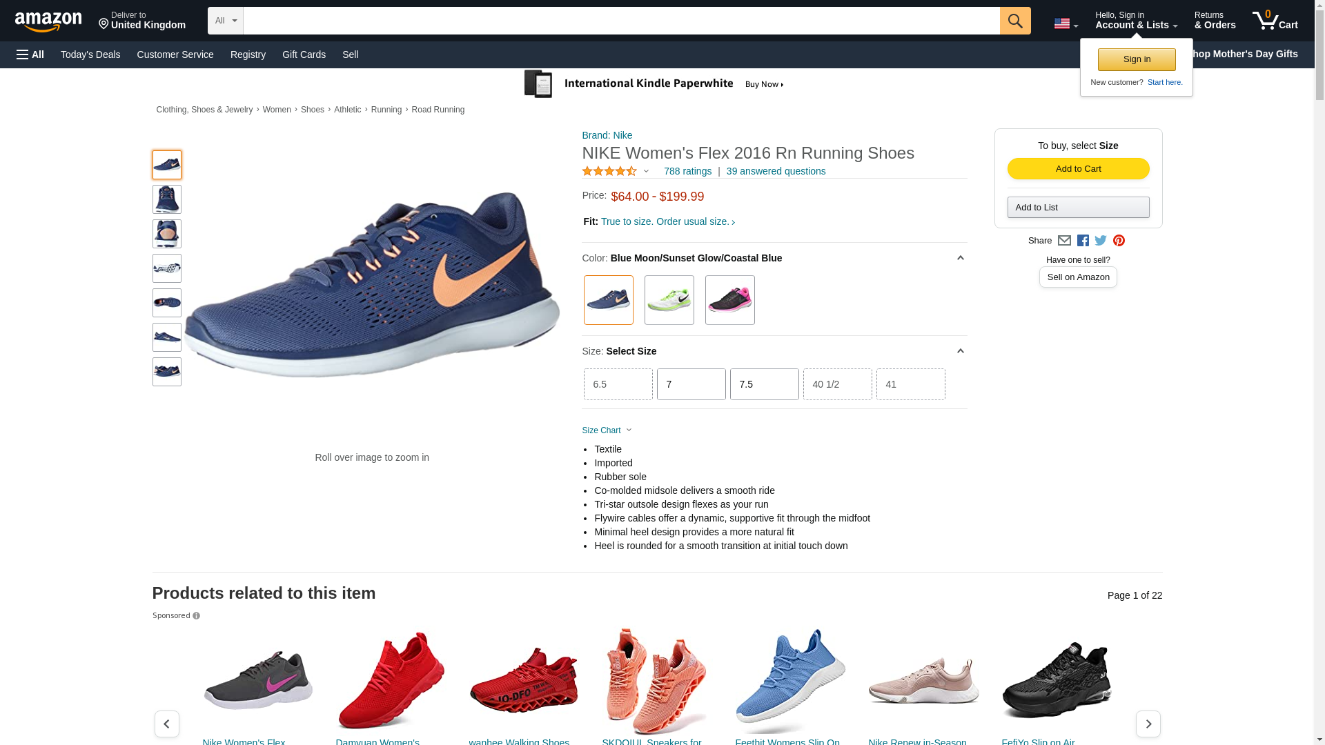 NIKE Women's Flex 2016 RN Running Shoes (6 B(M) US, Blue Moon/Sunset Glow/Coastal Blue)