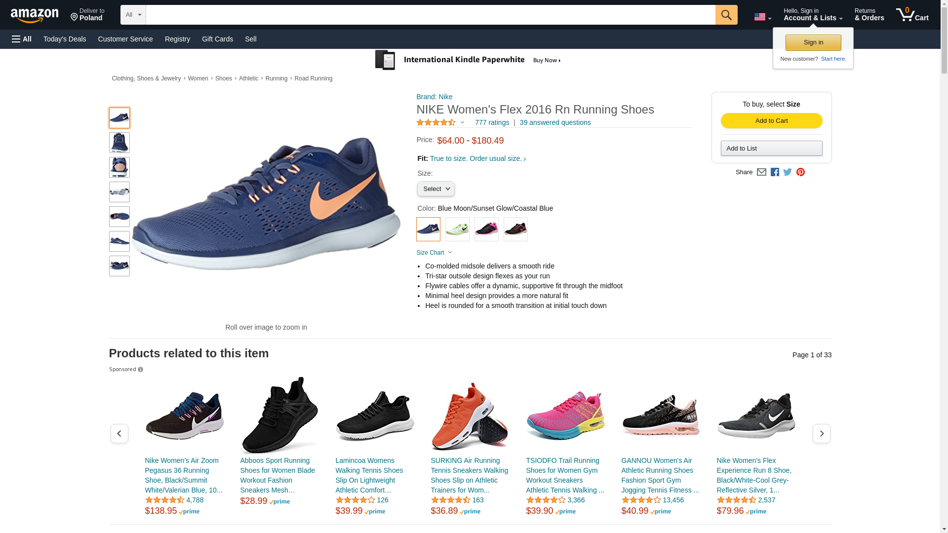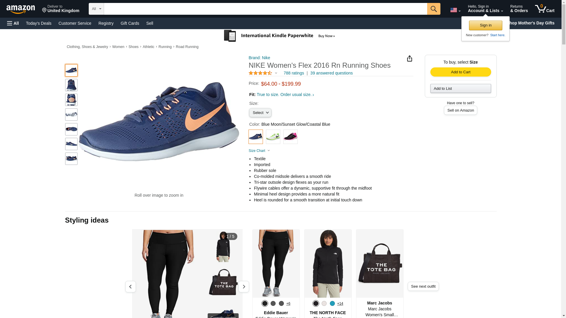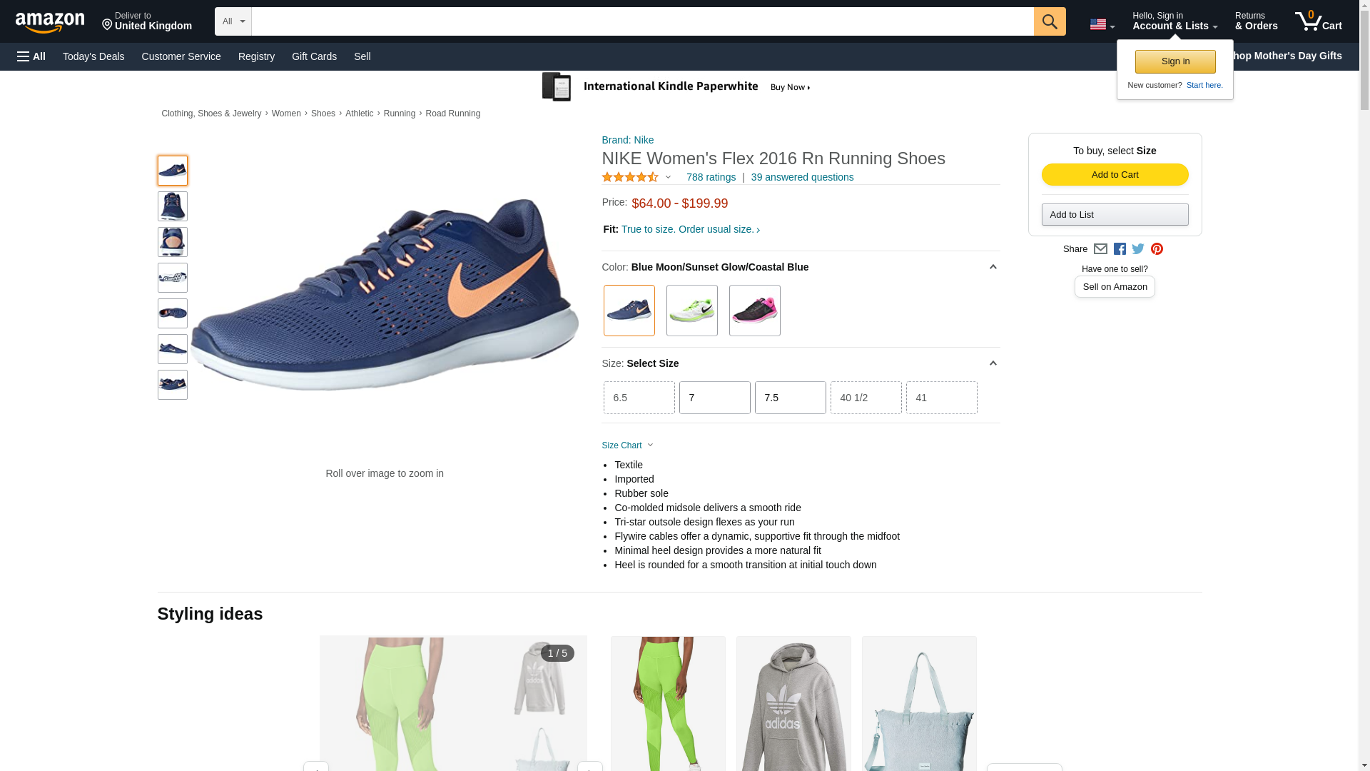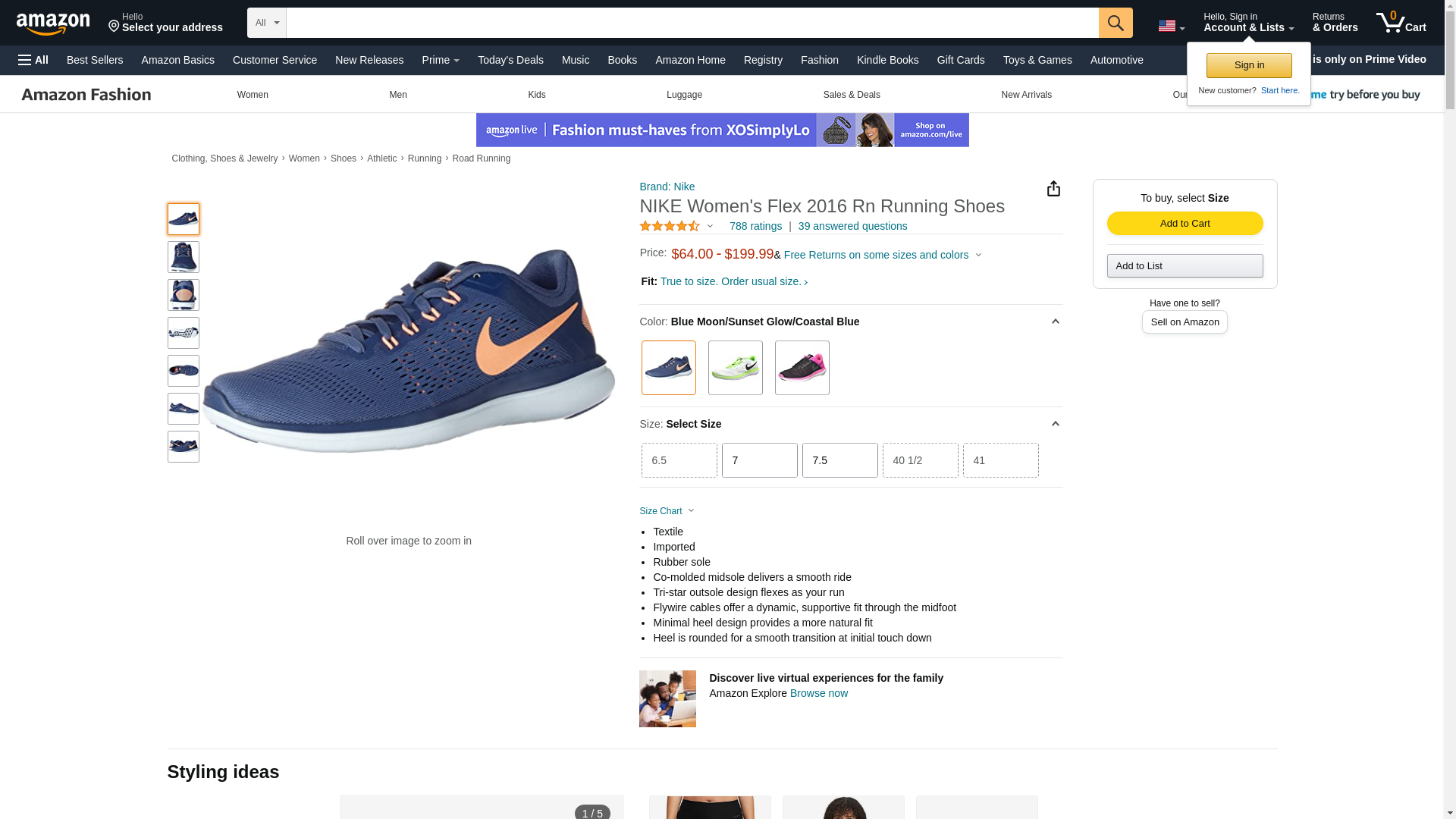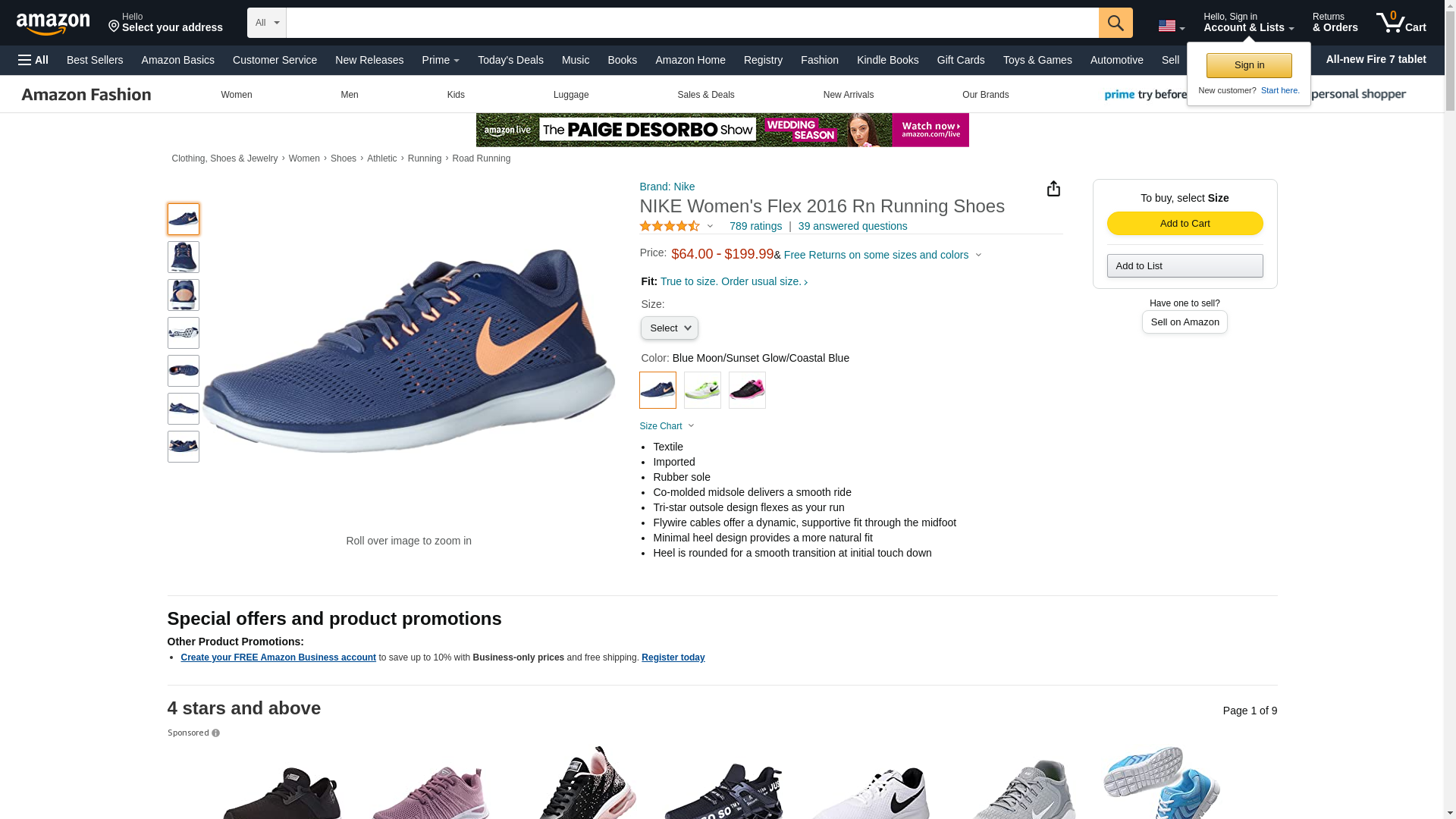 NIKE Women's Flex 2016 RN Running Shoes (6 B(M) US, Blue Moon/Sunset Glow/Coastal Blue)