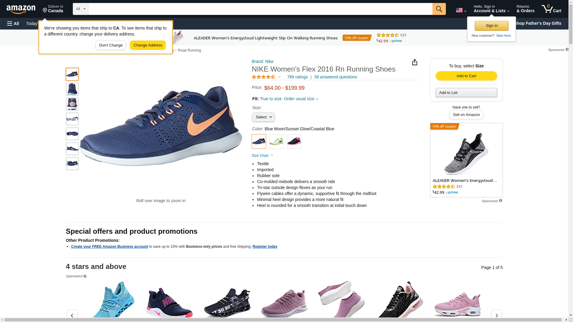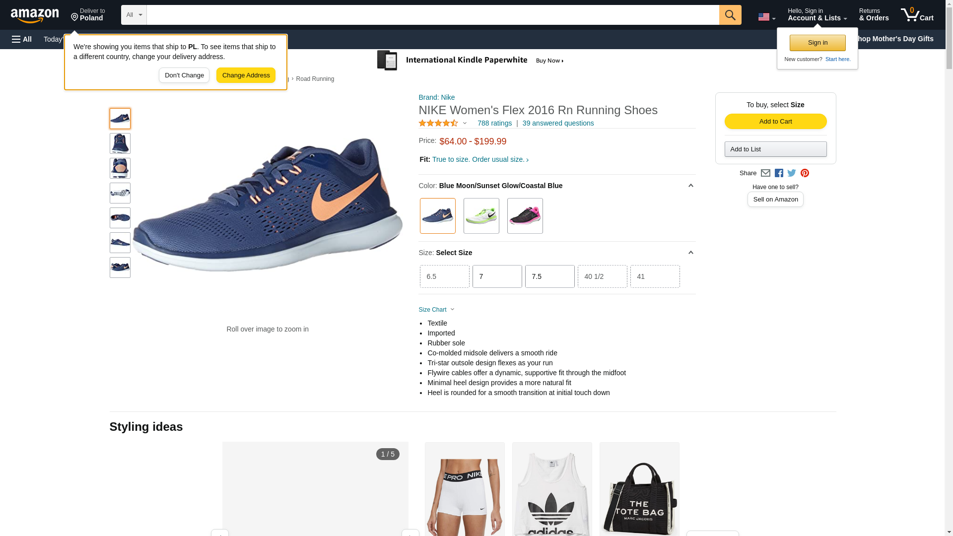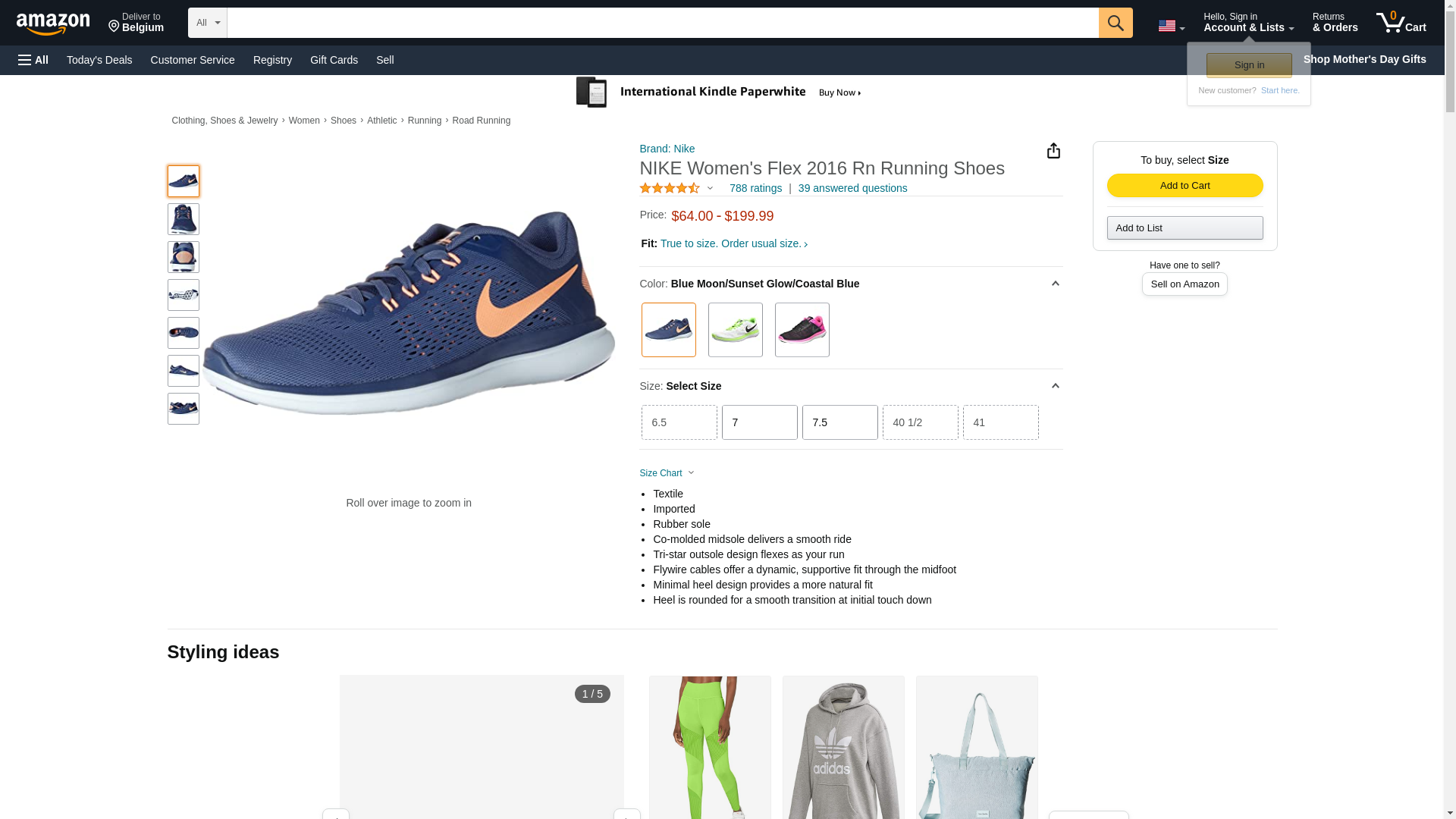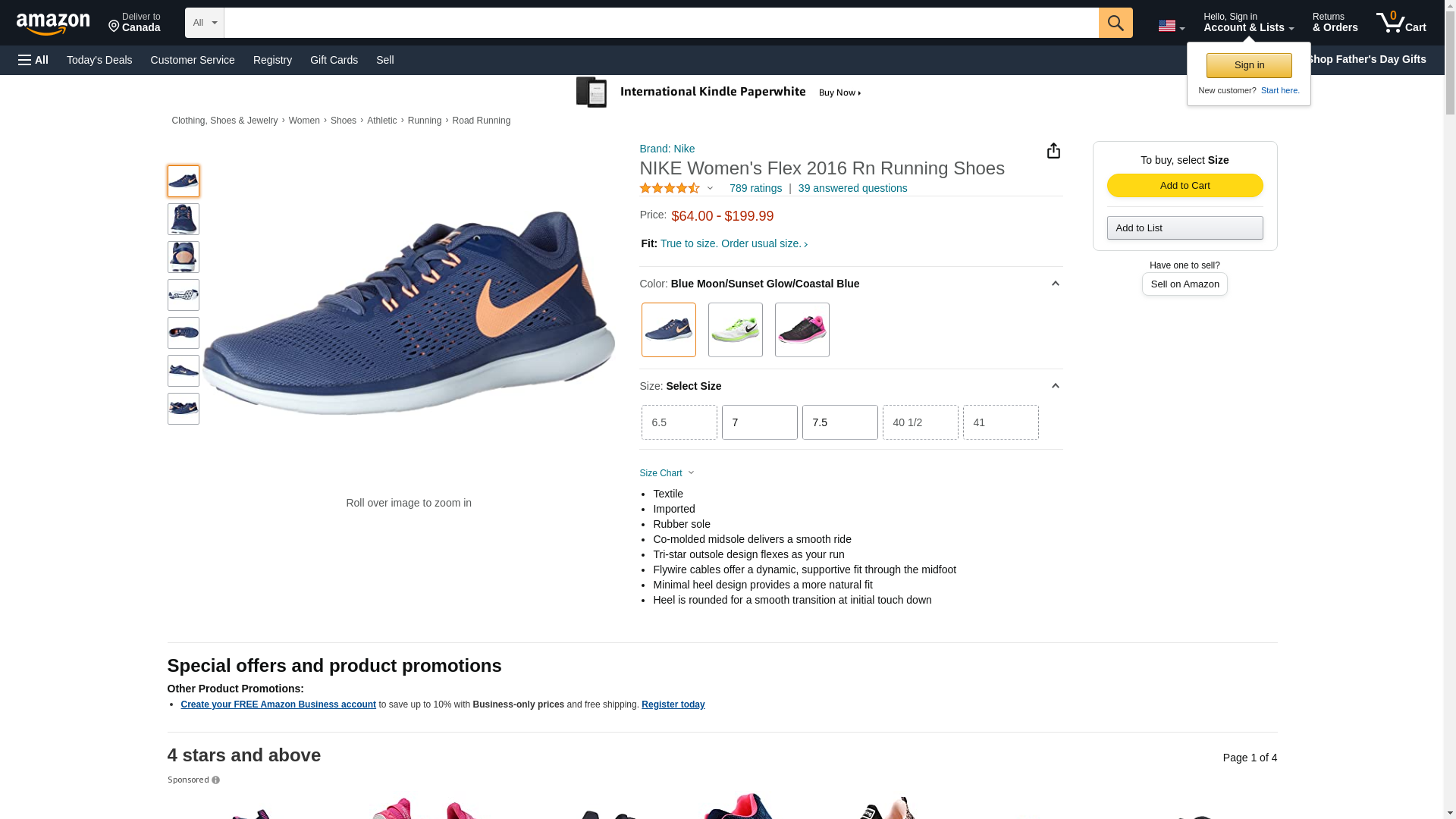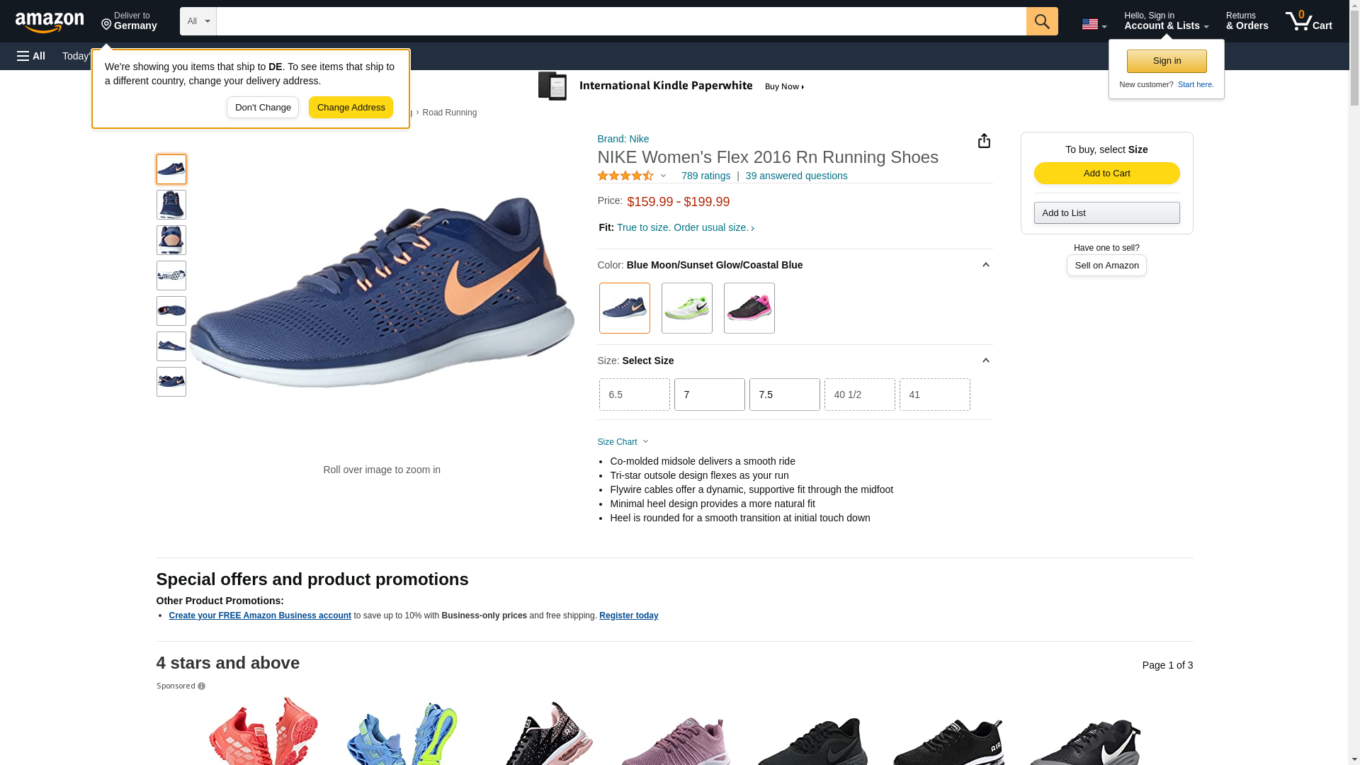 NIKE Women's Flex 2016 RN Running Shoes (6 B(M) US, Blue Moon/Sunset Glow/Coastal Blue)