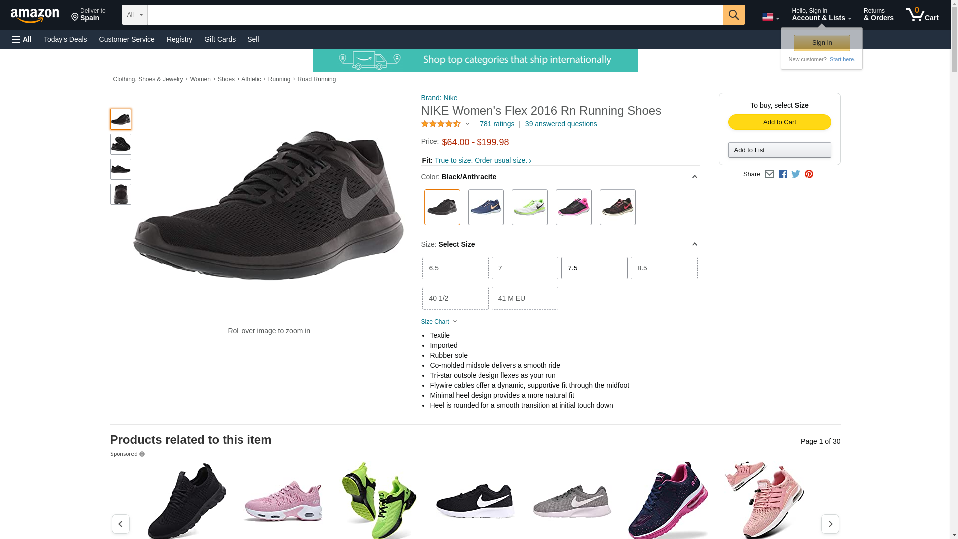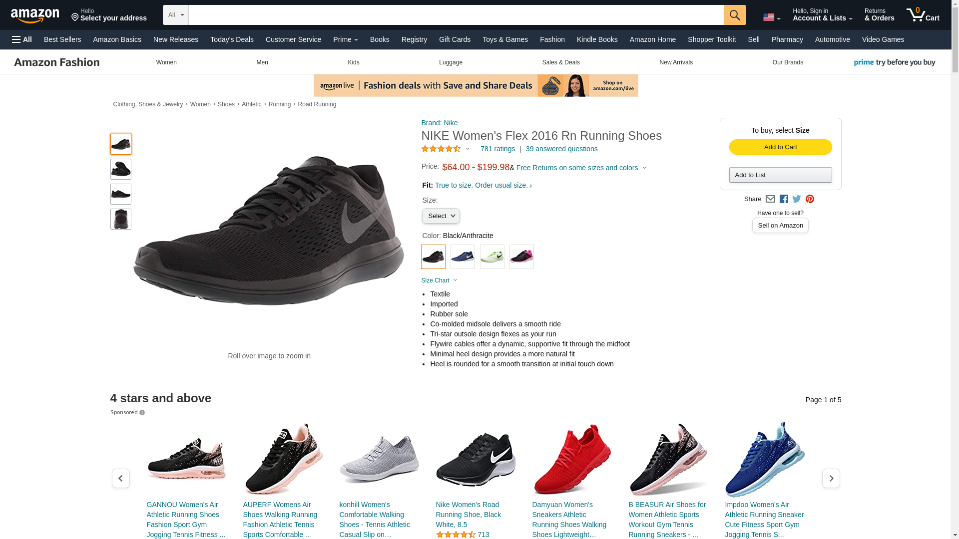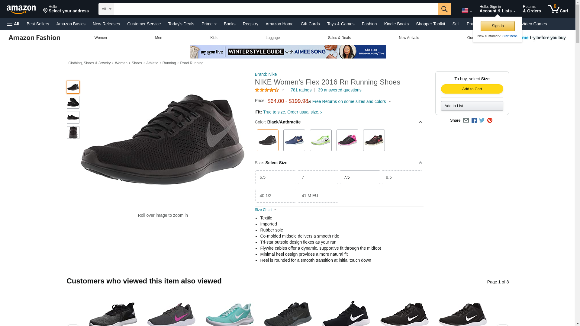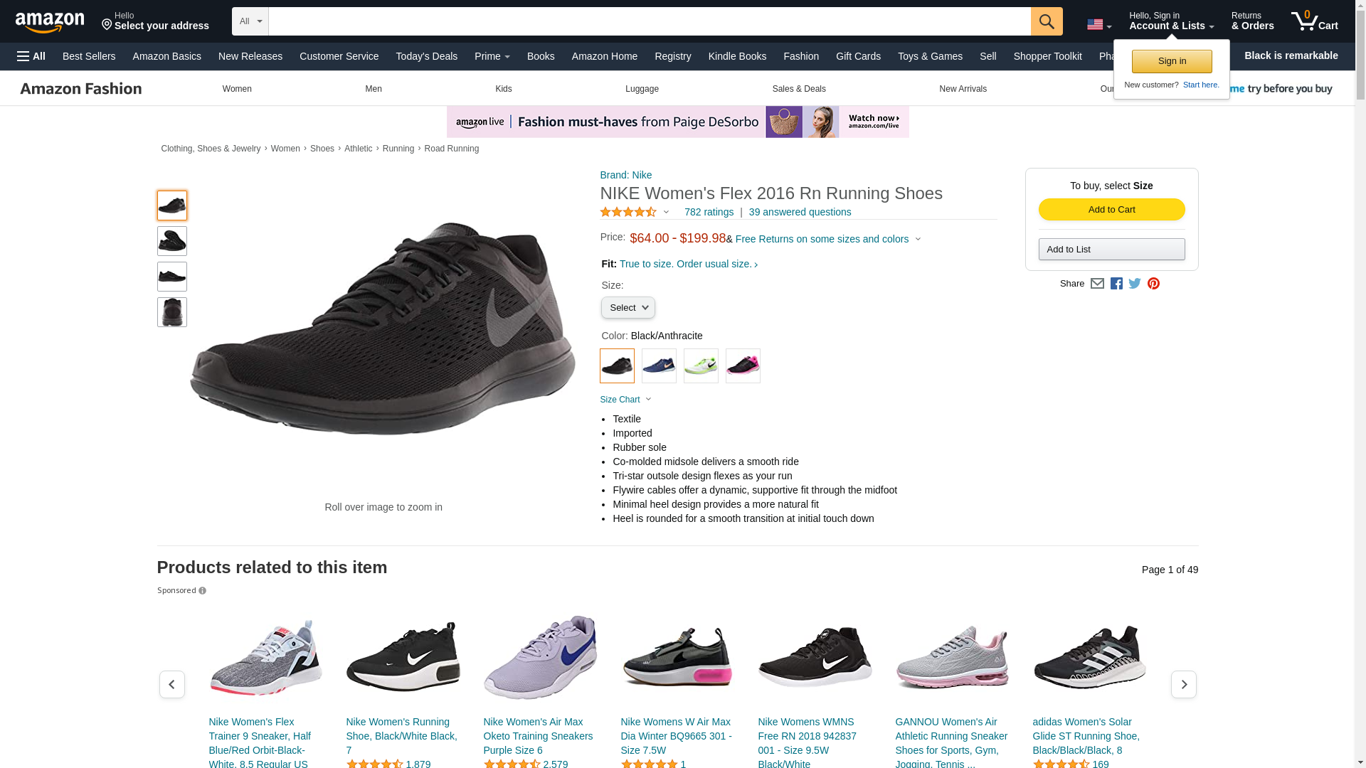 Nike Women's Flex 2016 RN Running Shoe, Black/Anthracite, 7 B US