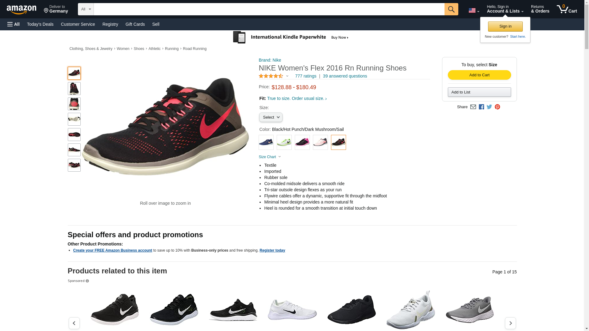 NIKE Women's Flex 2016 RN Running Shoe, Black/hot Punch/Dark Mushroom/sail, 9.5 B US