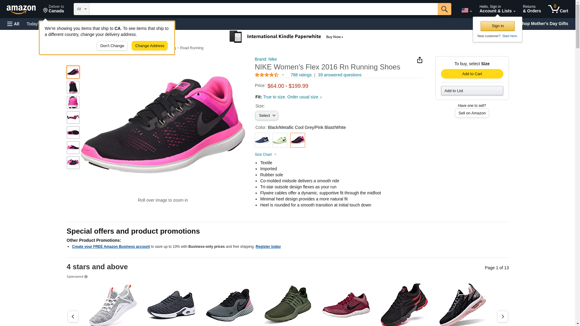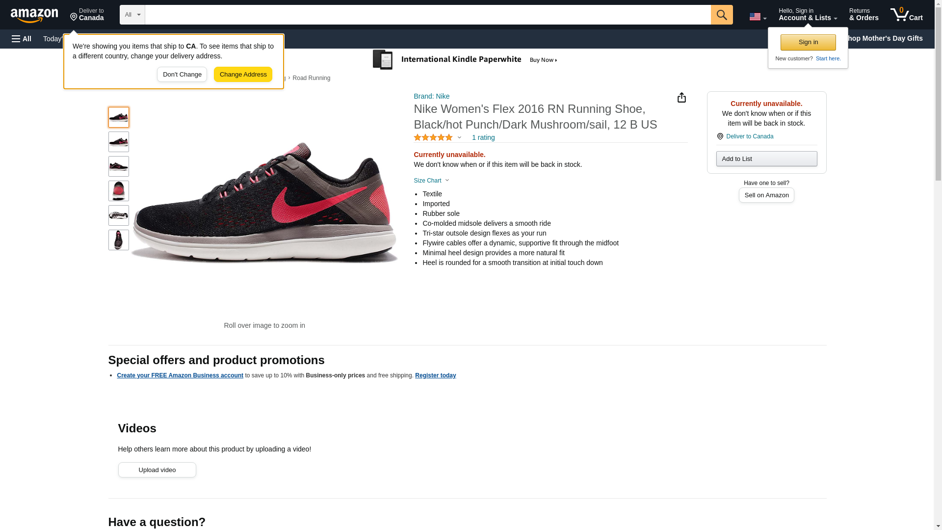 NIKE Women's Flex 2016 RN Running Shoe, Black/hot Punch/Dark Mushroom/sail, 7.5 B US