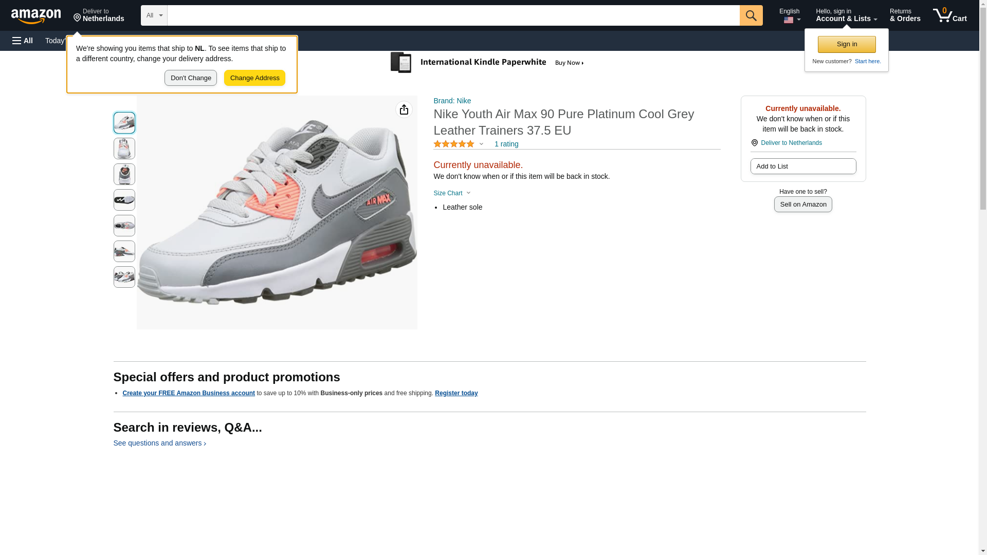 Nike Youth Air Max 90 Pure Platinum Cool Grey Leather Trainers 37.5 EU