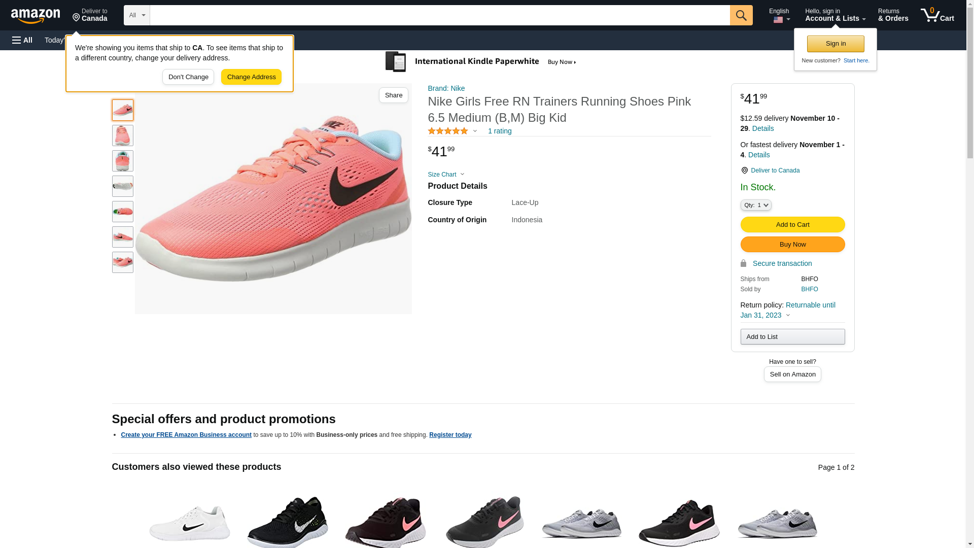 "Nike Kids' Free RN Big Kids Running Shoes (6.5)"