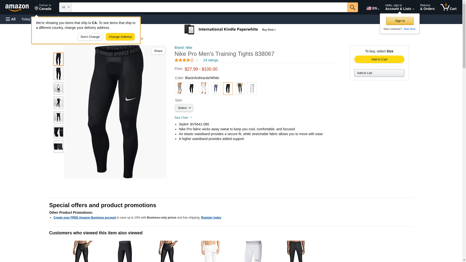 NIKE Men's Pro Tights Black/Anthracite/White Size Large