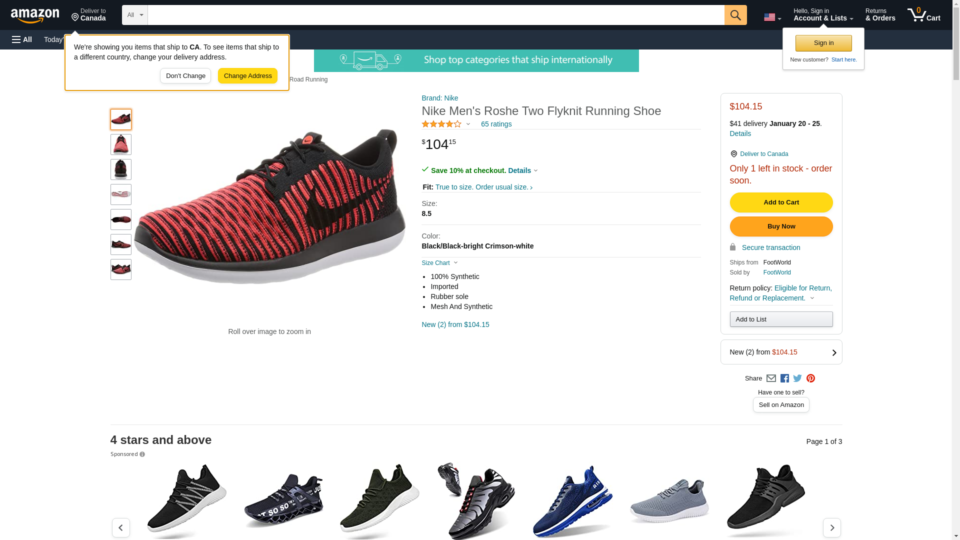 NIKE Mens Roshe Two Running Shoes Black/Bright Crimson/Clear Jade 844833-003 Size 8.5