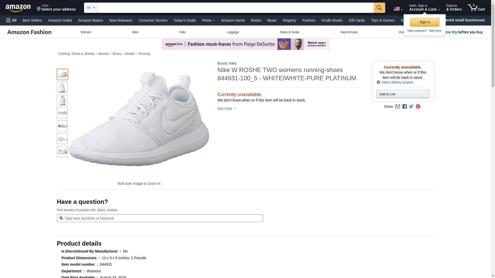 Nike W ROSHE TWO womens running-shoes 844931-100_9.5 - WHITE/WHITE-PURE PLATINUM