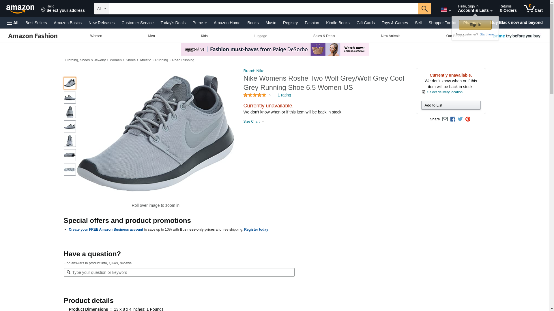 Nike Women's Roshe Two Wolf Grey/White/Wolf Grey Running Shoe - 8 B(M) US